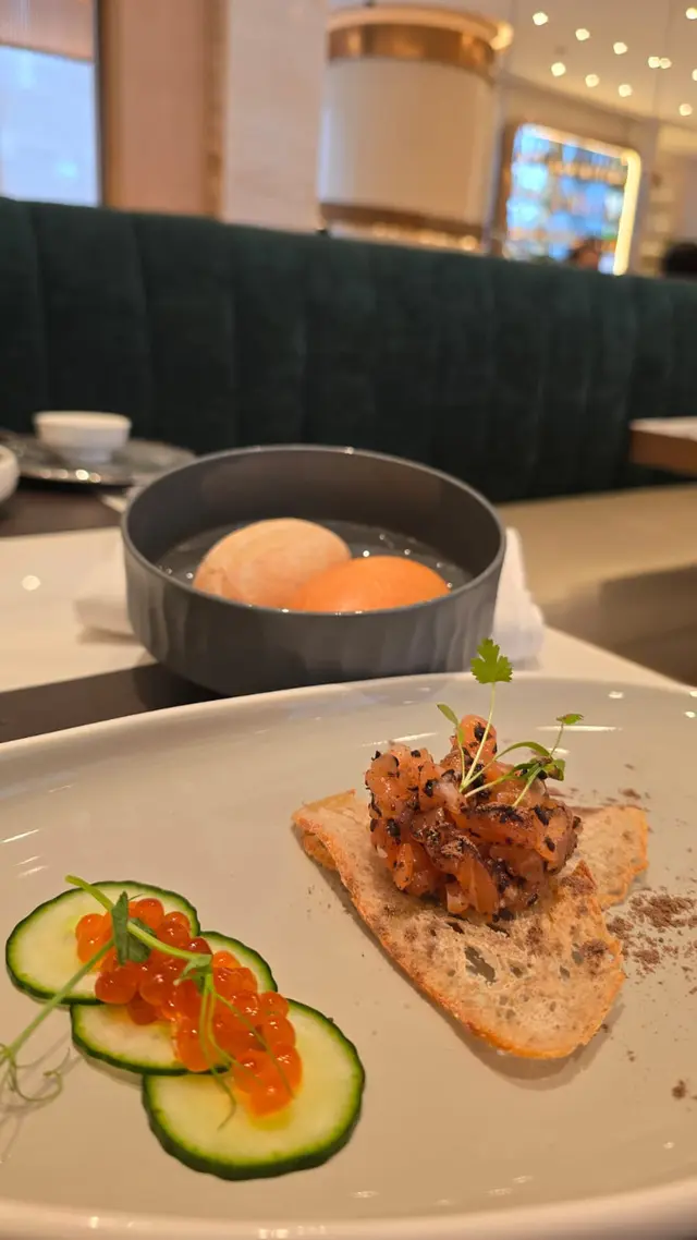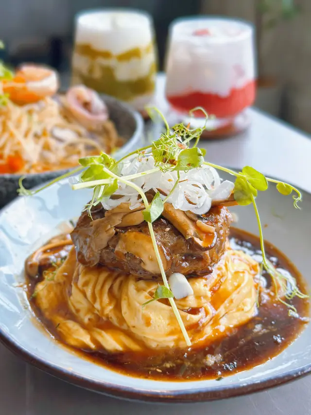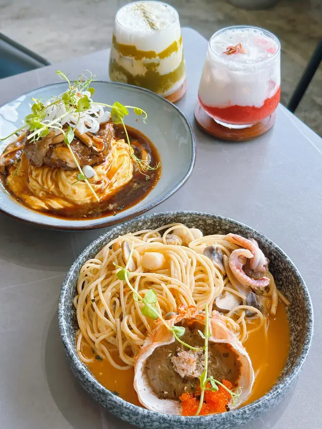 走進樓上cafe UMI維港景色映入眼簾🌊裝潢以水泥風為主調,放有不少綠色植物🪴環境舒適🌱如果想坐窗邊座位,記住要訂座🤣午市有沙律🥗意粉🍝意大利飯🍚burger🍔ADB等選擇❣️價錢由$108起+$28 可配檸檬茶特飲/美式咖啡+乳酪杯+$48自選飲品+精選甜品+$88自選飲品+自選甜品🔸野菌照燒汁和牛漢堡扒蛋包意大利飯 $148滑嫩細緻的炒蛋輕輕地鋪在飯面🍳底下的意大利飯吸滿了濃郁的醬汁🍚米飯粒粒分明。面頭大塊和牛漢堡扒🐮外層帶著微微的焦香,又厚又多汁🥩每一口都能感受到肉質的鮮嫩與油脂的香甜,醇厚的照燒醬,配上爽脆的洋蔥絲🧅及香濃的野菌🍄🟫令人回味無窮🔸蟹膏甲羅燒龍蝦汁海鮮意粉 $158蟹殼裡盛滿濃稠的蟹膏🦀輕輕烤過後,配上滿滿的蟹肉,再以蟹籽點綴🧡鹹鮮滋味瞬間溢滿口腔。意粉裡還藏著軟嫩的鮮蝦🦐鮮甜的貝類和彈牙的魷魚圈🦑與香濃的龍蝦汁🦞完美結合🔸精選甜品是日精選甜品為tiramisu☕️底層的咖啡酒浸泡手指餅乾,帶來微微濕潤的口感,伴隨著濃郁的咖啡與酒香🤎每一口都能感受到意式風情,點綴著糖漬橙片和各式堅果🍭帶有份外酸甜酥脆的滋味🔸靜岡抹茶豆乳濃郁的抹茶綠與乳白色豆乳交融🍵像是一幅溫柔的漸層畫🎨入口都能感受到抹茶的微苦與豆乳的順滑融合,細膩而不甜膩🔸草莓酸奶草莓的甜酸與酸奶的濃郁平衡得恰到好處🍓草莓果粒甚有咬口,飲落口感細緻🧊冰涼清爽…Read More