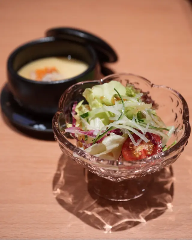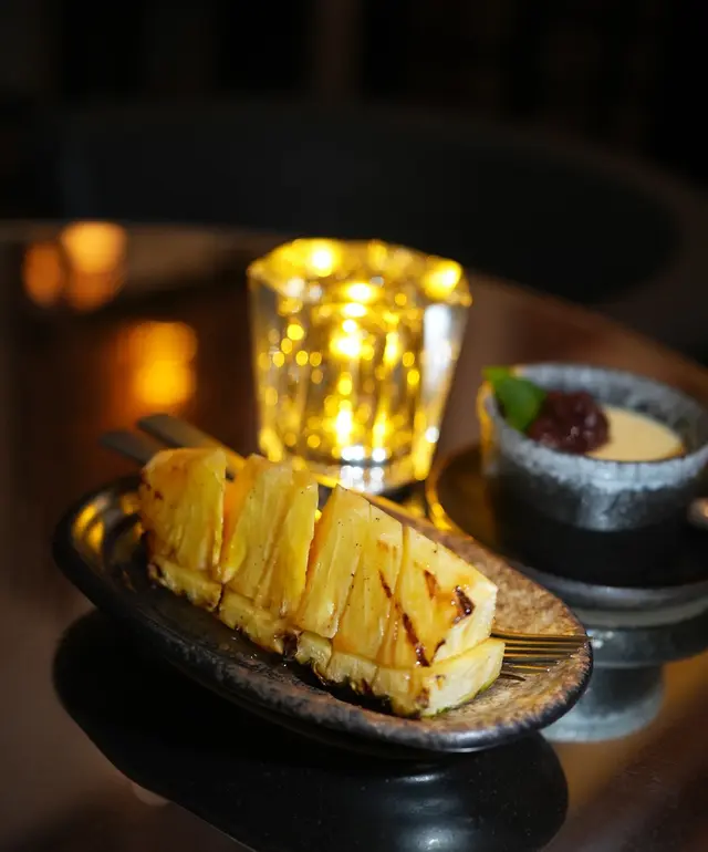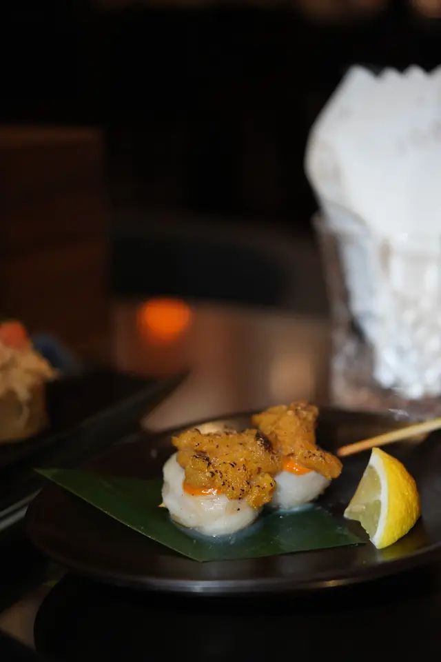 今日同大家分享一間位於尖沙咀嘅型格日式酒吧餐廳——Room 3!呢度主打將日式同西式烹調手法融合,每道菜都充滿驚喜,絕對係視覺同味覺嘅雙重享受✨首先必試嘅係「海膽帆立貝」,鮮甜嘅帆立貝配上濃郁海膽,口感軟滑又Creamy,一啖已經令人難忘~另一亮點「火炙牛海膽紫菜TACO手卷」創意十足,天婦羅紫菜脆片包住炙燒牛肉同海膽,入口層次豐富,牛香同海膽鮮味完美交融!主菜推薦「北海道辣味魷魚肝汁松葉蟹肉意大利麵」,微辣嘅魷魚肝汁掛滿每條意粉,松葉蟹肉鮮味突出,味道濃郁得嚟又唔會膩~「西班牙黑豚玉子燒鮑魚釀雞翼」亦係功夫菜,去骨雞翼釀入黑豚肉同鮑魚,咬落Juicy又彈牙,超有驚喜!小食方面,「廣島吉列蠔」外酥內嫩,蠔味爆漿;「迷你蟹玉蟹肉酥盒撻」蟹肉鮮甜,撻皮鬆化,一口一件剛剛好~甜品「菠蘿焦糖燒」同「北海道牛乳紅豆布丁」都做得精緻,奶香濃郁又唔會過甜,完美作結!飲品推薦有酒精嘅「Empress」同無酒精「The Good Twin」,調酒師功力十足,味道平衡易入口,配搭美食一流~環境方面,暗黑型格風格加上柔和燈光,好適合朋友聚餐或約會,氣氛輕鬆又chill!總括來說,Room 3無論食物質素、創意同環境都值得高分,係尖沙咀區一個高質嘅用餐選擇!記得提前book位啊~…查看更多