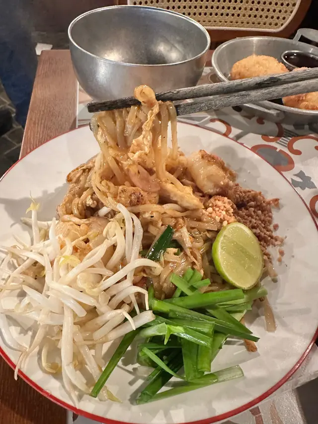 位於中環嘅泰排檔,係一間米芝蓮推介既排隊紅店,lunch大排長龍!主打地道泰國街頭美食,餐廳概念同埋泰國Thongsmith如出一轍,九成食材更加係由泰國直接入口,誠意十足😋😋🍤 炸粟米蝦餅 外皮香脆,蝦肉鮮甜!粟米粒增添口感層次,佢個醬係超級超級好食🤤🤤有少少似酸梅汁既醬,仲令到食落唔熱氣,超特色!🍜 泰式炒金邊粉(虎蝦) 份量好多,金邊粉炒得夠鑊氣,虎蝦爽口彈牙!超大隻!香料味濃郁,每一啖都充滿泰式風情😋😋🐔 雞肉泰式炒河 呢個河粉不得不提,超推介!超級滑溜,沾埋汁食好香口,入口好滿足!雞肉嫩滑,係一個好出色嘅鑊氣河粉!🥭 芒果糯米飯 😍😍芒果香甜多汁,糯米煙韌不黏牙,椰漿分開上,可以自己決定沾幾多,椰漿香濃!推介食!🍹 龍眼冰清甜消暑,青檸梳打酸爽醒胃…查看更多