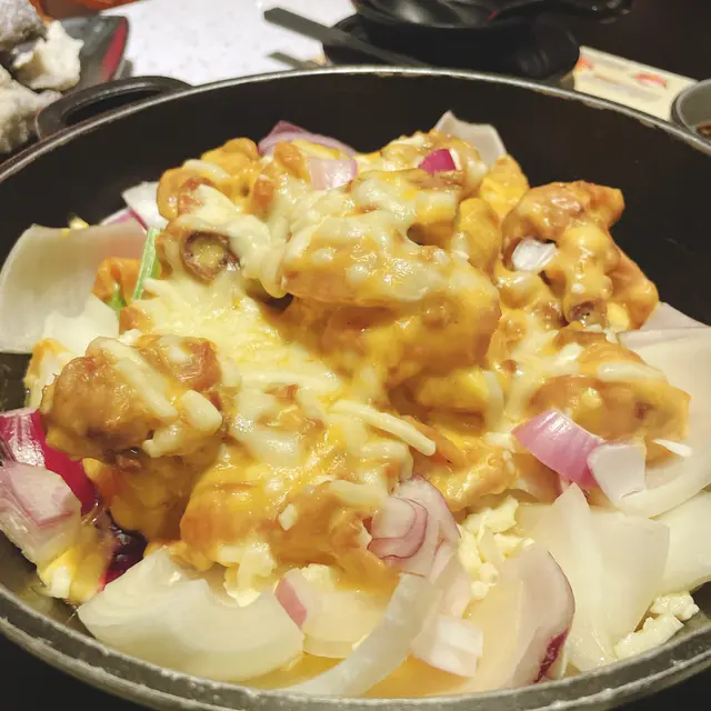 前晚同三位朋友喺觀塘睇戲前快閃入米走雞Live醫肚。店內工業風配霓虹,枱距尚可,抽風算得力,唔焗促;燈光偏亮,食物好上鏡📸。門口等位約18分鐘⏳,店員步伐爽快,帶位上菜利落。背景歌輕快偏熱鬧,談天聲量OK,適合趕時間嘅飯局同朋友聚一聚🏃♀️🍽️。黃金芝士雞煲 💛💛💛💛:雞件去骨易夾,肉滑不柴;芝士醬濃而不死鹹,帶少少辣粉提味,撈麵撈飯都邪惡🧀🔥,偏膩但四人share啱啱好。鳳城水餃 💛💛💛:餃皮厚身略彈,餡料實淨;湯底清中帶鮮,鹹度重半級,影相一般但穩陣之選😌。鮮製韭菜餃 💛💛💛💛:咬開爆汁,韭香突出而不辛,豬肉比例得體,點鎮江醋更醒胃,連吃兩粒都唔會膩🥟。米走雞皇牌拼盤 💛💛💛💛:一上枱顏值高📸,炸物脆而不油,滷味入味帶淡淡香料氣,口感層次多,配啤酒更夾。霜降prime牛板腱 💛💛💛💛:油花平均,落鍋兩三秒即食,嫩而有嚼,牛味濃;蘸返雞煲邊醬更添香氣與厚度🐮。花雕醉雞件 💛💛💛💛:花雕酒香馥郁但不烈,雞皮爽滑帶啫喱感,鹽度控制得宜,冰涼入口更舒服🍶🍗。棉花肚 💛💛💛:孔隙多吸汁力強,爽彈帶微脆;需煮耐少少先去羶,吸滿芝士醬後幾過癮,單吃就較普通。等位約18分鐘,翻枱快;整體賣相高分,芝士瀑布同拼盤都相當「呃like」📸。味道大致對辦,與名氣相符,唔係淨係得個樣;以雞煲、牛板腱、醉雞最穩陣,水餃與棉花肚屬中規中矩。價錢以觀塘商場計算合理,趕住入場前醫肚幾方便😋👍。…查看更多