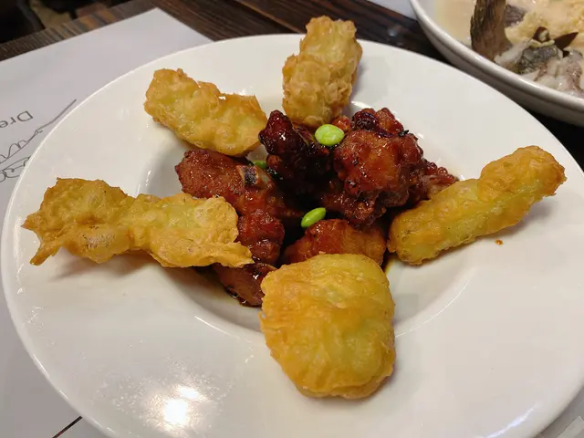 呢間私房菜已成功成為私竇👍 CP值太高燉湯冇影,但記得係有青橄欖同埋石斛,落好順口好舒服,老闆娘有排毒同清熱嘅效果。三小碟一d都唔小碟中間個脆片好惹味又超大塊烤麩同蕃茄仔都好食呢碟係馬友立鱗燒呢個冇得輸