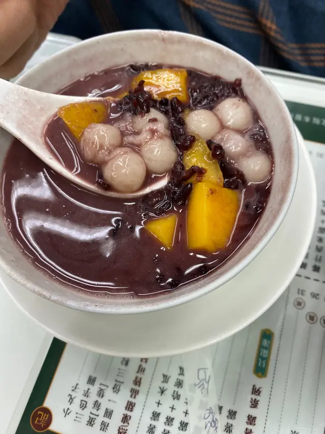 係附近食完飯未夠喉想搵甜野食,見有間中式糖水舖,有位又有得加下小丸子芋圓咁,價錢都係普普通通嘅價啦。裝修都企理又幾光猛咁就諗住試吓。兩條友諗來諗去都係諗住食紫米露,諗住呢樣野應該唔會衰得去邊,友人就揀芒果紫米露+小丸子,我就揀凍嘅椰汁紫米露。凍嘅椰汁紫米露味道上都算可以啦,但就好稀好水嘅一碗野咁,都有椰香味嘅,但紫米就粒粒分明,可能有d人會鍾意呢種感覺啦,係我唔識欣賞