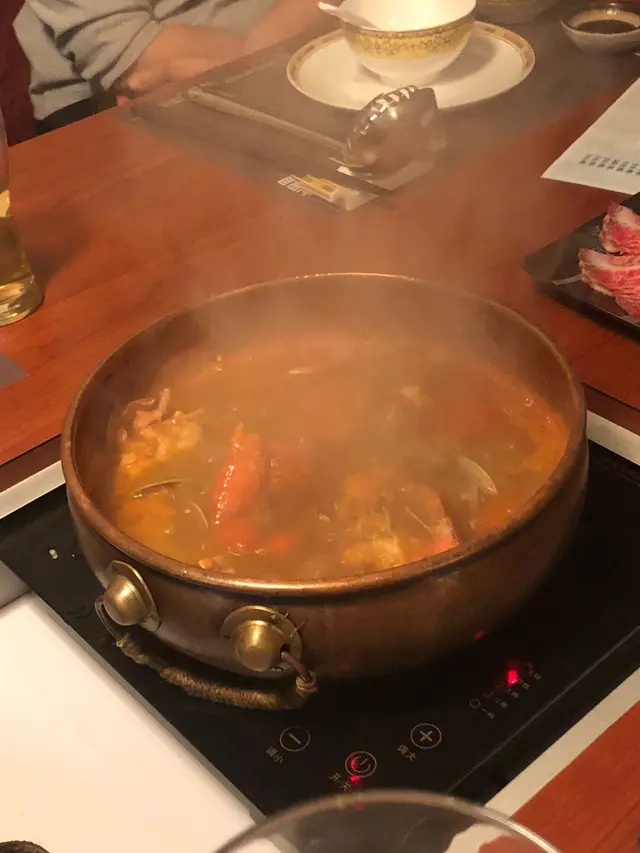 平日晚上跟同事飯聚,今天吃了椰青雞鍋及龍蝦鍋!先由服務員哥哥先用酒炒香食材,再放濃湯滾起來,湯底極濃、牛肉靚,海鮮也夠新鮮!愛好清淡的朋友,請點其他湯底。因為今天是坐樓上房間,服務態度好,但因為地理環境,支援有點緩慢!心急人要俾一點耐性了還是感謝服務員哥哥送的甜品🍮價格屬中上級,裝潢不錯,算是合理!唯一要投訴的是洗手間有欠衛生,今天算少人客不多,也是這樣,要是滿坐的話,洗手間情況相信更加嚴重希望店主關注!…查看更多