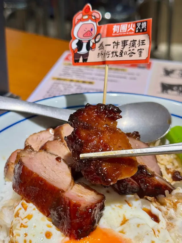 ♦️有團火叉燒事務所 (新蒲崗)♦️餐廳主要係食叉燒煎蛋飯,QR code 落單。食物方面無咩選擇。餐廳聲稱對於出面小店同酒店都唔完全滿意,所以就自己開一間專做叉燒餐廳,同時又表示大道至簡,所以專心做好一樣嘢,因此食物款式選擇唔多。腩叉飯$62,梅頭叉燒$58,飲品汽水另加$6 。叉燒肉質柔軟嫩滑但蜜汁甜度略嫌不足。叉燒雖然有燶邊但就唔係焦脆香口,唔想要燶邊叉燒可以落單果時選擇走燶邊。整體嚟講,$58 一個lunch有啲進取,叉燒入口鬆軟亦都有肉既香味,有肉汁同油潤而且入口無膩口感覺,可以一食。♦️雙蜜豉香叉燒飯 $58🏠:新蒲崗景福街75號地舖…查看更多