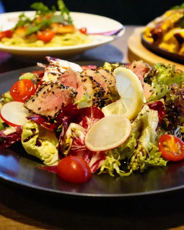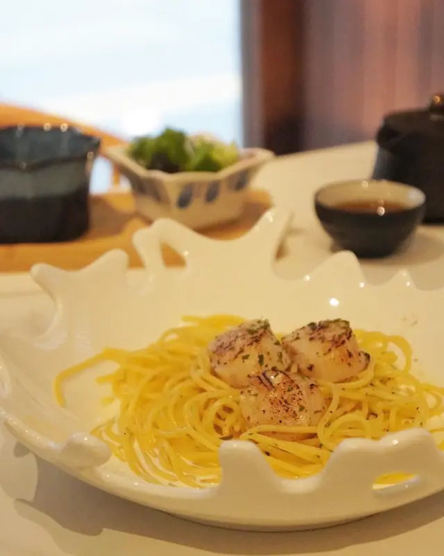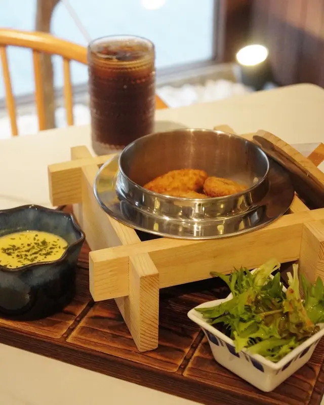 🎐日式輕食午餐🎐推介指數❤️❤️❤️❤️🤍位於百德新街的餐廳,以木和水泥裝潢,主要提供輕食和甜品,每個座位都有藤籃給客人放置隨身物品點選輕食/丼飯套餐,同樣包括主菜、餐湯、沙律、主菜及茶,價錢HKD128+🐚 Truffle Grill Scallop ✨ 3隻香煎帶子配忌廉汁意大利,份量比較適合女生輕食;松露忌廉汁濃稠一點會更掛汁;是日餐湯粟米湯有粟米粒增加口感🐽 Japan Tonkatsu Donburi ✨ 擺盤比較有儀式感,3件吉列黑豚肉不油膩,半熟玉子是白飯神偷🗻Hojicha Fujisan & Matcha Fujisan✨綿滑焙茶/抹茶富士山奶蓋,Menu上建議先品嚐濃厚醇滑奶蓋、攪拌20圈後飲到味道變化,最後充分攪拌品嚐幼滑口感;焙茶味道輕柔、抹茶比較突出🌟整體飲品比較深刻、環境及服務加分☺️…查看更多
