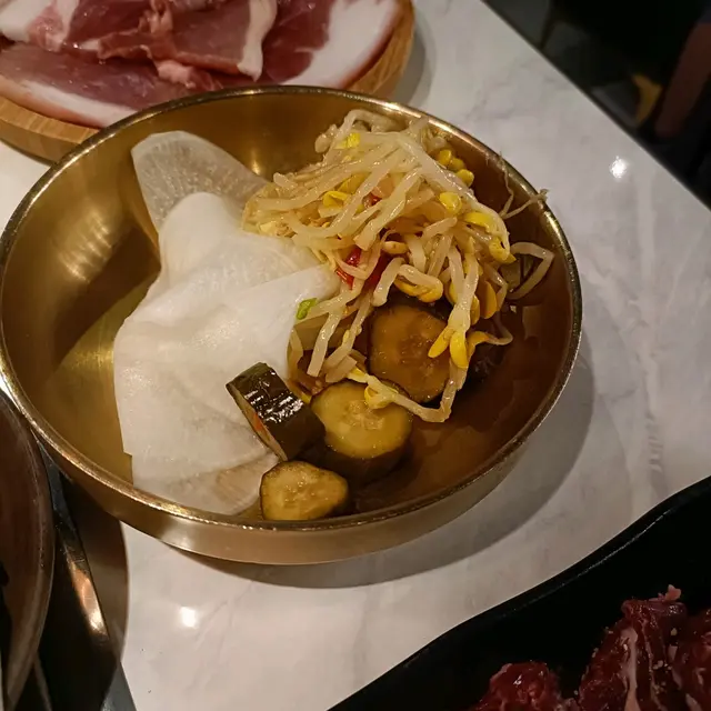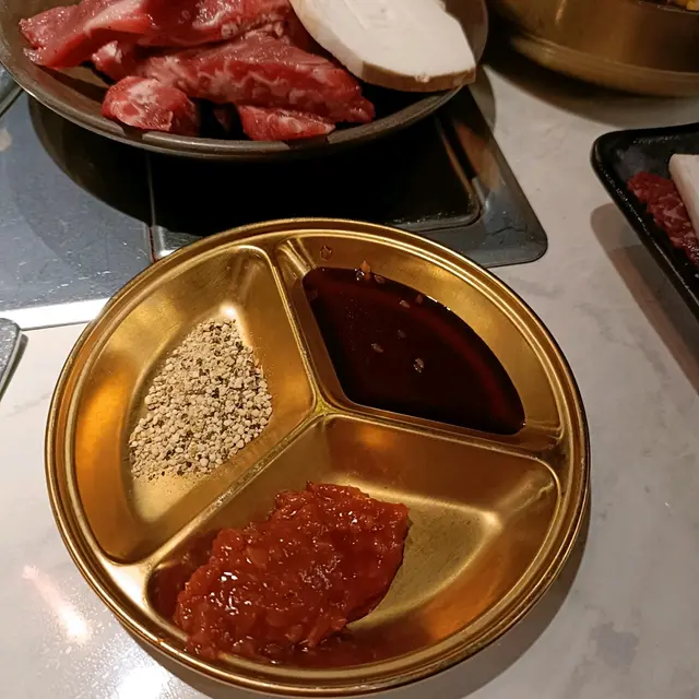同伴喜歡吃牛,我帶佢去試新野。舞特盛 $698🔸沙律唔錯,沙律菜係新鮮到爽脆的,脆脆的很清新。🔸泡菜少辣,惹味。我配鍋飯食好夾。🔸和牛四點盛和牛羽下同埋和牛肩三角都好好食。和羽下一放上爐燒,即刻搶火。油花好靚,入口即溶嗰隻!🔸夢之大地豚三味🔸日本産雞肉三味兩種肉都高質,豬肉更勝一籌。可惜分唔到係邊個部位的肉。🔸石鍋和牛牛肉伴飯估唔到咁好食。調味適中。牛肉係熟的肉片,我以為會係生肥牛。🔸上等牛舌薄切大塊,輕燒兩面即熟食得。軟香淋滑,嘴裡充滿滋味。🔸和牛肋肉眼看非常靚,油脂分佈平均。入口中上,我會比較推介羽下 。…查看更多
