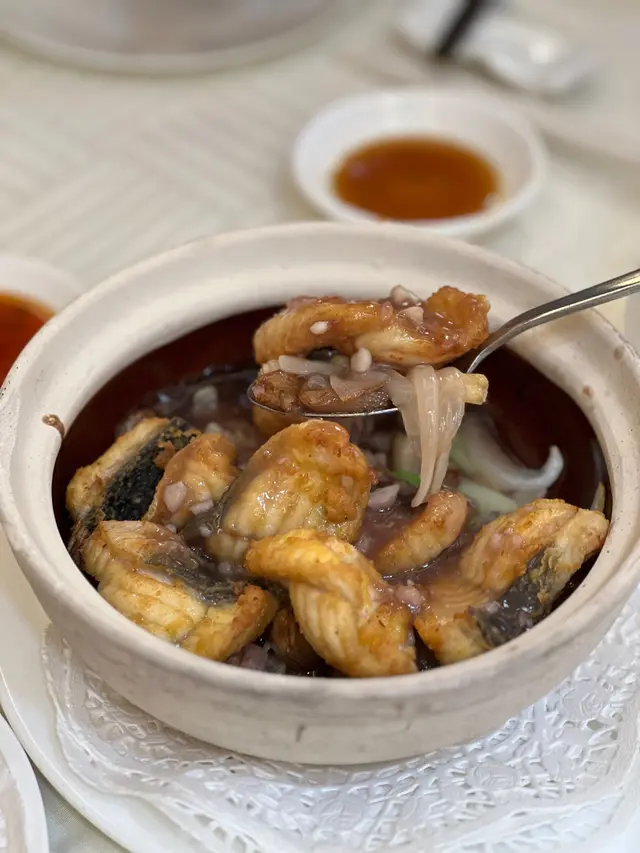忙足一星期,終於有時間歇一歇。坐地鐵到深水埗站,出站行五分鐘,就來到這間金豪酒家。幸好已預先訂位,等十分鐘,便能被安排入座,位置在角落,私人空間十足。不過,今日實在太多客人,環境有點嘈吵,閒聊近況也要略提聲量。點菜後,侍應姐姐很客氣地說:「今日比較多人,上菜可能有點慢,請耐心等候。」可能已經被期望管理了,又或是因為談得太開心,轉眼間,便上第一道菜。好味醬烤骨標榜是日本黑毛豬,非常軟熟,大大塊,上面又有原片菠蘿,配合得沒有油膩感。分量十足,三個人,每人也有三、四件。冰火鮮魷魚冰涼的魷魚條,配以火辣的醬汁,確有冰火交融,又冷又熱的感覺。椒鹽豆腐內軟外脆,熱辣辣的一口豆腐,使人吃不停口,要一口接一口。翡翠炒斑球大大片斑塊,軟熟得來有咬口,再配輕炒的西蘭花,簡直妙絕。豉油王中蝦去腳去鬚,如果有得去埋殼就更Perfect。金豪濃湯雞煲壓軸的,當然是這個招牌濃湯排翅!下鍋前,侍應會遞上一碟,原裝勁量的魚翅;濃郁的雞湯魚排翅,簡直是天衣無縫。…查看更多