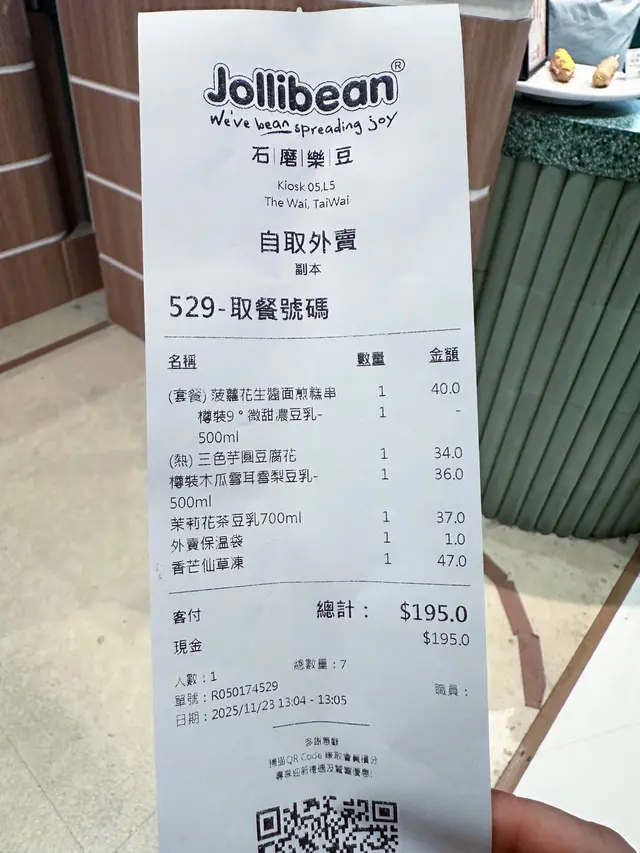 Jollibean源自新加坡🇸🇬,佢哋嘅產品主打健康輕食文化👍🏻。店家自設5000呎廠房,使用台灣全自動化磨豆機,每日石磨鮮製🤩,完全係新加坡mix香港地道特色風味~·♡ 菠蘿花生醬面煎糕串 x 樽裝9°微甜濃豆乳 HKD$40/set係融合新加坡同香港嘅新奇組合😍,新加坡pancake crossover港式菠蘿包脆皮🤗,一串串上勁cute,一粒粒🍡咬好方便!! 質感有啲似香港嘅雞蛋仔🍳,原來面煎糕嘅外皮由煎熟面漿製成,內餡則以花生碎🥜為主。粒粒面煎糕口感外脆內軟,揀咗花生醬內餡,好香好濃郁😋,另外兩款內餡仲有麻糬/咖央~ 而套餐仲包咗一支樽裝9°微甜濃豆乳🥛,微甜甜度剛剛好,豆乳味道豐盈👍🏻。·♡ 香芒仙草凍 HKD$47係 芒果🥭x仙草x西米 嘅組合,三樣嘢混合埋一齊口感勁豐富🤩!! 芒果香甜,仙草滑溜回甘,西米爽彈,大愛呢款😍「金秋香芒派對」新品,下次試埋另外兩款👉🏻香芒金露、香芒小宇宙。·♡ 三色芋圓豆腐花 HKD$34勁足料好滿足🤗,有齊我至愛芋圓同豆腐花~ 豆腐花軟嫩滑溜😋,倒入最簡單嘅黃糖水,微甜順喉;而三色芋圓軟Q有嚼勁😙,好有錦上添嘅效果。·♡ 樽裝木瓜雪耳雪梨豆乳 HKD$36秋冬季天氣轉涼必飲😚,木瓜、雪耳、雪梨啱哂滋補養生🤗,呢個組合搭配豆乳絕對係健康之選。·♡ 茉莉花茶豆乳 HKD$37/700ml估唔到茉莉花茶🌼味道幾突出,係豆乳中飲到淡淡花香,微甜幾清新🌾。·📍Jollibean 石磨樂豆香港大圍車公廟路18號圍方5樓Kiosk 05號舖…查看更多