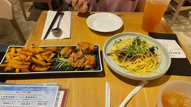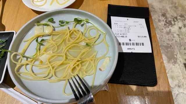 因為過來這邊逛街,看到這一間餐廳裝潢不錯點了下午茶$65 蒜片雜菌意大利麵套餐餐廳把蒜片加入意大利粉一齊用大量水煮切菜的時候保留了蒜頭的尾部不切走成功煮到絲毫沒有蒜頭的香味、意大利麵的麥味所謂的雜菌也只是幾條沒有調味過的菇吃下去什麼味道也沒有, 難道我點錯了寵物食物?為什麼長着像意粉的東西可以完全沒有味道?大廚一定是通過什麼特訓才可以把食物煮得這樣食之無味老闆一定是前輩子做了什麼好事才能令到這碟如此難吃的麵,用$65都有人買單強烈推介這家餐廳給想挑戰味蕾極限的修行者、或是不能吃有任何添加調味料食物的狗狗另外, 點了一份鹽酥雞拼蕃薯條, 有些咸味,估計是給人吃的…查看更多
