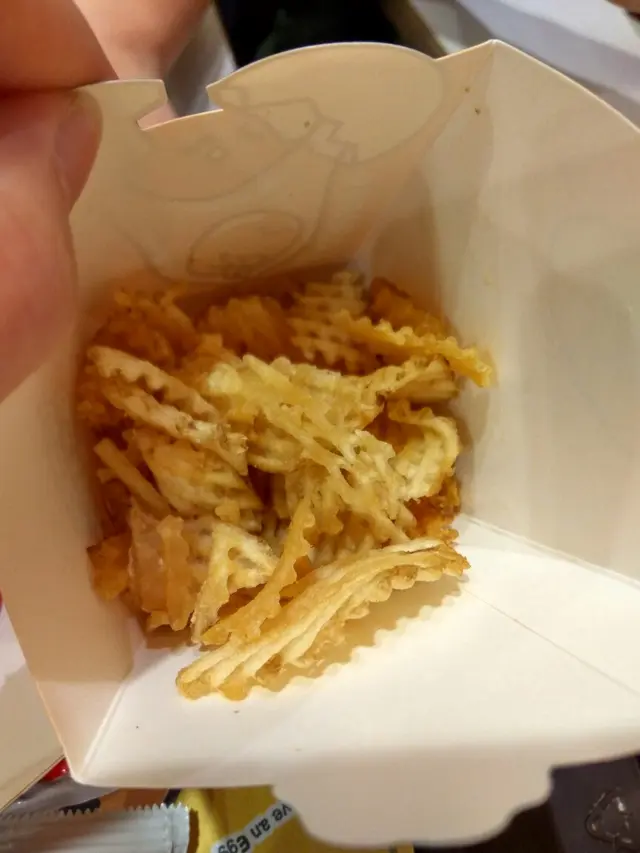 薄薯脆 麥當勞 (屯門時代廣場) 2016-06-17因為喺大會堂有活動嘅關係,午餐只能喺呢度衝衝忙忙食尐嘢就算,叫左個雙層芝士孖寶餐,薯條轉左薄薯脆。薄薯脆用一個折起嘅紙杯裝住,滿滿的一杯,而且同個名好附合,一塊嘢切得好薄,食落有尐食薯片嘅感覺,真係好脆,但又唔會好似袋裝薯片咁咸,好聽尐就似即炸嘅薯片。但就好碎。題外話,小妹去到時,正好係佢地嘅繁忙時間,唔知係唔係忙得有尐攰,所以將小妹話堂食撳左外賣。而執餐嘅姨姨,將小妹杯可樂執左杯雪碧,小妹共叫左兩個超值餐同一個小童餐,其中一個超值餐要轉粟米,但依然俾左薯條我…查看更多以上食记乃用户个人意见 , 并不代表OpenRice之观点。1分享薄薯脆 麥當勞 (屯門時代廣場) https://s.openrice.com/QrLT0bhyJW0检举 张贴 评分3味道3环境3服务3卫生3抵食用餐途径堂食