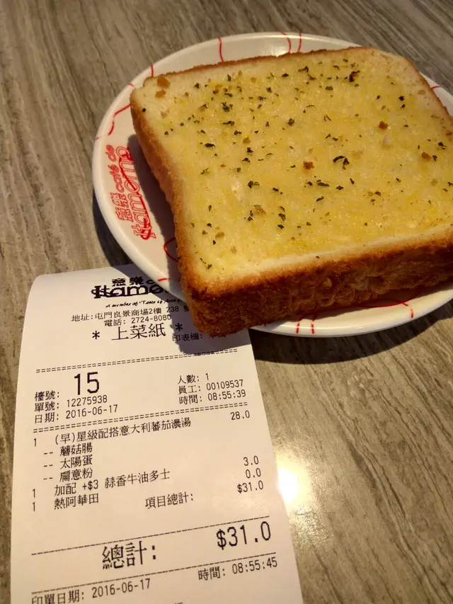 扁意粉 意樂餐廳 (良景廣場) 2016-06-19前兩次黎食早餐已經留意到有一個叫『扁意粉』的早餐,小妹雖然唔係意粉迷,但始終第一次知道有扁意粉呢樣嘢,所以襯黎良景上最後一堂嘅課程,又特意提早少少黎食個早餐。因為之前食過蘑菇腸覺得唔錯,所以今次食扁意粉所加嘅兩個餸其中一個都係要返蘑菇腸,另一個就要太陽蛋(小妹特意在落單嘅時候問店員可唔可以要太陽蛋,店員話可以所以小妹要左太陽蛋,如果唔講明要太陽蛋係會俾全熟蛋架)第一次食扁意粉嘅小妹覺得扁意粉同平時食開嘅意粉係有尐分別,扁意粉係帶有少少爽身的,個湯都唔錯架!洋蔥已經煮到淋晒,尐甜味出左黎,新鮮嘅番茄肉少少酸,好清爽開胃…查看更多以上食记乃用户个人意见 , 并不代表OpenRice之观点。1分享扁意粉 意樂餐廳 (良景廣場) https://s.openrice.com/QrLT01iGd00检举 张贴 评分3味道3环境3服务3卫生3抵食用餐途径堂食相关食记30日内同一位会员在同一间餐厅提交的食记再次光臨一個人的時光