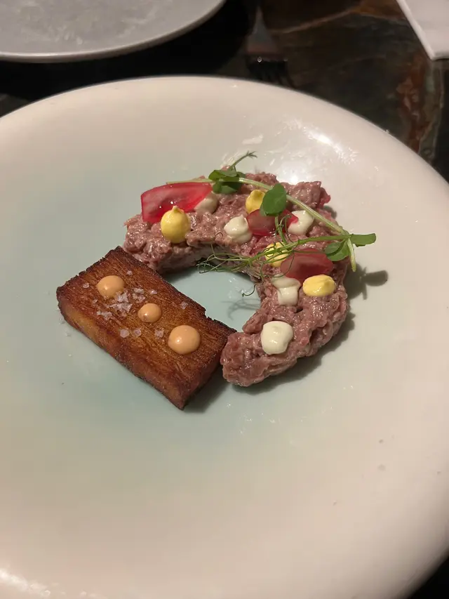 一間都幾出名的扒房,終於有機會同朋友嚟試😬叫咗個兩人set再另加紅酒,店面雖然唔算大但都幾有氛圍感。$888 set for 2Steak tartare (+$28)牛肉表面比較熟,同啲醬撈勻一齊食都係好食嘅,而旁邊嘅千層薯蓉好有驚喜!第一次食咁特別嘅薯仔,好酥脆好有層次感😋Seasonal soup🍄🟫食親西餐都一定會見到嘅蘑菇湯🤩濃稠度啱啱好,唔會澀到一pat糊咁,有好香濃黑松露味。Daily m4+ wagyu beef🥩 照舊叫三成熟,牛味重賣相超靚,最抵讚嘅係冇乜筋,唔會好難咬👍🏻Roast spring chicken🍗 呢度嘅招牌之一,完美的燒春雞,表皮脆得嚟雞肉都好juicy,真正外脆內嫩🤤Chef’s dessert🍰Tiramisu嘅咖啡可可粉偏苦,啱晒啲鍾意飲齋啡嘅人🤓不過底下嘅蛋糕同cream偏甜,成件事又會變到啱啱好balance返,酒香味都好突出。檸檬慕絲蛋糕入口順滑,微酸嘅檸檬配上奶香慕絲,底下仲有特製果醬,完全唔會漏。…查看更多