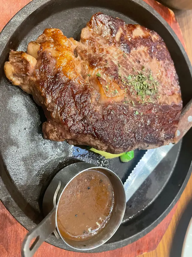 Wake Up係荷里活廣場開咗分店,見就腳就去食晚餐試吓。兩個人唔太餓,叫咗一10安士(約280g)嘅鐵板肉眼牛扒(可配意粉或薯菜)套餐,包一碗例湯同一杯餐飲。另外我哋叫咗一碗法式蟹肉龍蝦及一杯牛油乳酪。先上咗兩個餐包,隨著上咗鐵板牛扒。牛扒應該係煎好放上鐵板,所以唔會彈汁,但係温度唔易keep住。塊牛扒有根,有啲難切,都有肉汁嘅。餐湯有粟米碎粒,調味口感都唔錯,而蟹肉龍蝦湯都好有龍蝦味,有蟹肉。意粉有嚼口(輕微偏硬),調味恰好。牛油果乳酪有牛油果香,幼滑,微甜。…查看更多