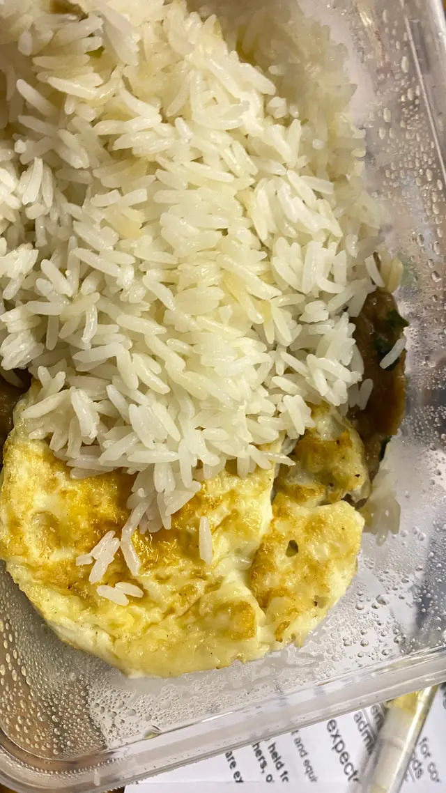 外賣點的蔬菜和煎蛋牛肉飯,看樣貌感覺一般般,一定要澆醬油汁,不然味道好淡,澆了汁之後拌在一起會比較香。牛肉像早茶牛肉丸的味道包裝盒一般,收到時發現殼爛了一個角TAT…查看更多
