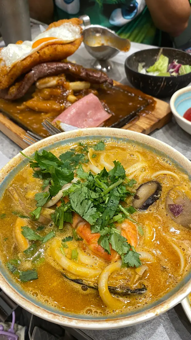 下午茶時間去的,人不算特別多,防疫挺不錯的,進門開始掃安心出行,然後把桌子椅子消毒過後再讓客人入座咖哩飯和牛肉米線味道不錯,就是沙律超出我意外,還以為有蔬菜在裡面,結果是水果和土豆粒在沙拉醬裡…查看更多
