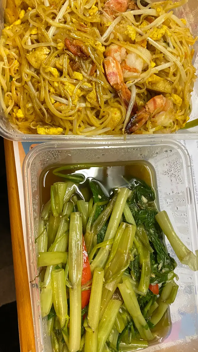 點了2份外賣,一個泰式炒蝦金邊粉,一個泰式鹹魚炒通菜。通菜味道還可以,炒粉一般般,感覺粉多,味道不入味⋯⋯I ordered 2 takeaways, one Thai style fried prawn noodle and one Thai style salted fish stir fry with vegetables. The stir-fried noodles were so-so...…查看更多