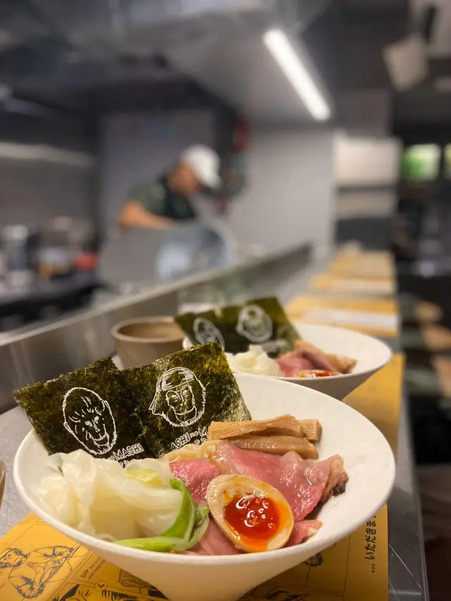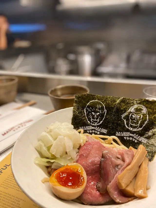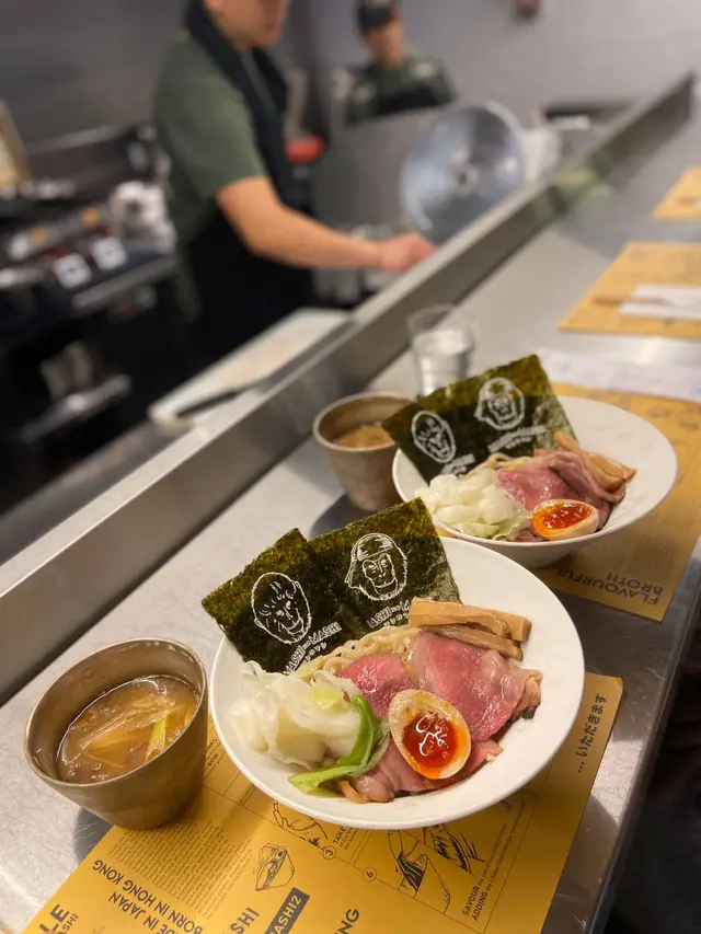 好值得一試嘅和牛沾麵!先講湯底 湯底係用咗和牛粒煮成 但唔係以為咁樣湯入面嘅和牛粒就會無味!絕對唔係!因為佢係即叫即煮 和牛粒唔會硬 而且好好食!!相反佢嘅麵條就遜色少少! 佢冇得選擇硬度 而佢煮得`偏淋 同埋唔知點解鹼水味好重 有啲奇怪!但佢依然好值得去試! 因為佢嘅雞蛋同埋A5 和牛係一流!!!! 食肉獸必試!和牛應該係輕輕燒過下 但依然保持住肉汁 同時入口即溶!建議一個食法比大家: 將和牛包住雞蛋係一個好正嘅感受 入口即溶嘅牛加上流心蛋既蛋黃一齊係口入面溶化 加上牛上面嘅燒汁 一鹹一甜!