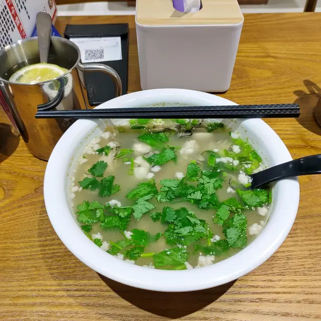 前排見元朗谷友力推森禾泡飯個蠔仔飯,bookmark左都未黎試,是晚正苦惱緊食咩好,諗起呢間泡飯,就黎試試吧😋小店只有四張枱,繁忙時段一位難求。餐牌除左泡飯,仲有唔少客飯、快餐等,價錢相當親民。學生餐仲三十蚊起,簡直係平到笑,點解我當年做學生個陣無呢啲抵食小店嘅?😂⭐蠔仔肉碎泡飯點了大熱嘅蠔仔肉碎泡飯加紫菜,賣相真係唔錯,蠔仔粒粒肥美飽滿,份量仲下得唔少,湯底係大地魚湯,加埋蠔仔認真鮮味,成碗食晒湯都無淨㗎,正😍⭐胡椒味菜豬肚雞湯飯另外仲叫左胡椒豬肚雞湯飯,湯飯個白飯係分開上嘅,份量仲大碗呀😳胡椒味菜豬肚雞滿滿一大碗,雞件鹹鮮,豬肚煮得淋身入味,個湯勁濃胡椒味,香香辣辣飲完出一身汗好舒服😝咁好味梗係一滴都飲晒啦!⭐瑞士雞翼仲加左份小食瑞士雞翼,一份有四隻,炆得軟腍入味,一咬就骨肉分離🤪連啲骨都入哂味。⭐凍鴛鴦 & ⭐凍檸賓跟飯熱餐飲加$2,凍飲$4,呢個價位合理吖。飲品大大杯夠冰凍,食完熱辣辣湯飯飲杯凍野確係爽😆哈哈,店員啲字好工整,一睇就知點左咩食😝…查看更多