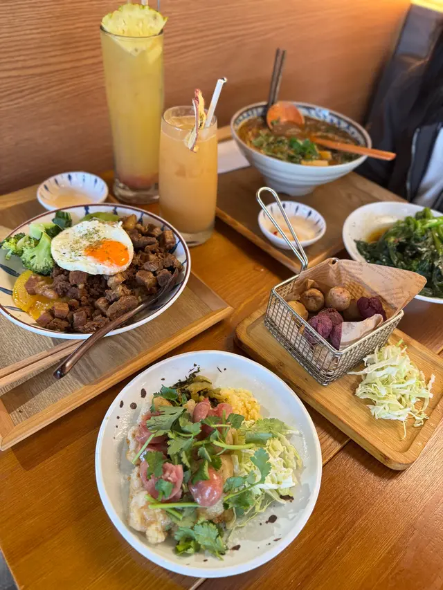 今日行山前嚟食個lunch,呢度絕對係「掛住台灣又唔想買機票」患者嘅福音!人均$100左右就可以瘋狂打卡呃like,仲可以滿足你個台灣胃~💥黯然銷魂安格斯滷肉飯 $68燜到入口即溶又入味,最特別係用牛肉嘔係豬肉,肉多到懷疑老闆計錯數,滷汁入味到連隻碗都想食埋!都唔知賺乜。🌶️麻辣鴨血寬粉 $66 + 🥬燙青菜 $12鴨血滑到好似同你玩緊溜滑梯,寬粉索盡麻辣精華!加$12燙青菜純粹為咗同阿媽講「我有食菜㗎!」(自我安慰模式啟動)🍠雙色QQ地瓜球 $36咬落去QQ到以為自己塊面做緊運動!紫色黃色傻傻分不清楚,但好食到令人想轉圈圈~🌭大腸包小腸 $42腸腸相遇,絕對係場美麗嘅誤會!糯米腸包住香腸,澱粉加肉類嘅邪惡組合,減肥?聽日先啦!🍹木玥黃金水果茶 $21🍎蘋果集氣益力多 $19水果茶多料到似食緊水果撈!益力多加蘋果,飲完成個人元氣爆發,返工都可以頂多兩個鐘~…查看更多