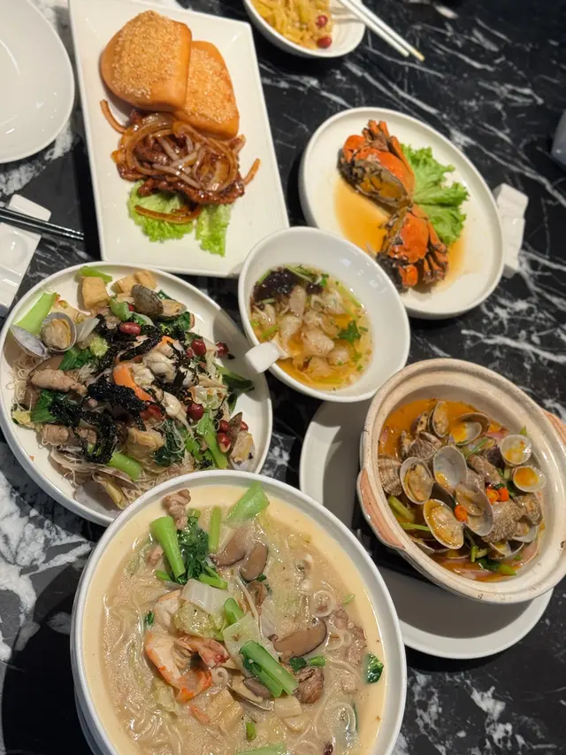 既有地道福建風味,也有創新菜式。尤其熟醉大閘蟹的酒香與鮮美,讓人印象深刻。🦀 熟醉大閘蟹(公) - $158蟹膏豐腴,酒香醉人,蟹肉經酒醉之後變得鮮嫩、甜滑。揭開蟹蓋,蟹膏肥美,入口後會有回甘。調味恰到好處,提升了蟹的鮮味。與普通清蒸大閘蟹相比,熟醉做法更顯廚師功力,酒香完全滲入蟹肉中,卻不會掩蓋大閘蟹本身的鮮甜。對於喜歡嘗試不同烹飪方式的蟹迷來說,這絕對是必點之選。🌶️ Spicy汁花蛤 - $98鮮辣開胃,醬汁惹味,花蛤新鮮飽滿,spicy汁味道濃郁,辣度適中,非常開胃。醬汁完美地帶出了花蛤的鮮甜,而且處理得乾淨,沒有砂石感。這道菜作為前菜十分合適,辣勁令人食慾大增,搭配後續的主食也很合適。🍝 興化炒米粉 - $118福建經典,細緻入味,這道是莆田的招牌菜之一,享負盛名的莆田米粉被譽為"白如雪、細如絲"。米粉鬆而韌,搭配十多種配料與上等濃湯燜炒,味濃鮮美,不愧是必食之選。炒功了得,米粉乾身不油,每一條都均勻上色,配料豐富,口感層次分明。對於想品嚐正宗福建風味的食客來說,這道菜絕對不能錯過。🥯 黃金荷葉包 - $76(2件)外脆內軟,配搭完美,荷葉包炸至金黃色,脆卜卜,切開後包入軟腍的豬肉條,連同炒至半熟的洋蔥,香氣撲鼻,口感豐富。這道菜不僅味道出色,視覺效果也很吸引。荷葉包的微脆與豬肉條的軟嫩形成有趣對比,洋蔥的甜味更提升了整體風味。雖然價格稍高,但絕對值得一試。🍜 海鮮滷麵 - $118湯鮮料足,暖心滿足,這道福建海鮮滷麵湯底非常鮮甜,裡面有大蜆、蝦等海鮮。麵條彈牙,配菜豐富。湯底吸收海鮮精華,濃郁而不膩,在微涼的秋天享用特別舒服。份量足夠,如果是點一人食的福建海鮮滷麵套餐,還會附上蠔油菜心和飲品。🍲 莆田扁肉湯 - $32福建特色,清爽可口,最愛吃莆田的扁肉湯,有魚香,蝦嘅香味,酸酸的,味道非常好。這道湯品清爽開胃,作為餐前湯或配搭主菜都很合適。扁肉口感特別,與一般餛飩不同,值得一試。…查看更多