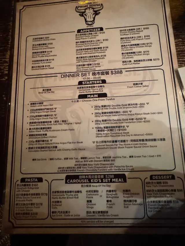 今次同個friend去The Prime House祭五臟廟,一次過試咗兩個dinner set($388/位),前菜餐湯主菜熱飲全部打晒卡!等我呢個「為食凸警」同大家開心share下:🥗 前菜分別有沙律、自製百里白蒜蓉牛油餐包同蘑菇湯。🍖 主菜一:230g US Meyer Natural Prime Angus Flat Iron(美國靚牛)塊牛排著住炭燒紋身出場,性感過荷里活巨星!放入口個刻,啲肉汁係口腔入面開游泳池派對,嗰種濃郁牛味。🐑 主菜二:Welsh Lamb Tenderloin(威爾斯羊仔柳)有羊味但又唔會騷到似入咗羊圈衝浪,恰到好處!同隻羊仔嘅溫柔邂逅,嫩滑得嚟帶少少咬口,第一啖係草原清新風,跟住係微微羶香,最後回甘。☕ 熱飲:完美句號整體體驗:份量方面:睇落好似唔係好多,但食完成個set,我同個friend都要鬆一鬆褲頭,證明人類個胃同叮噹個百寶袋一樣,睇落細其實無限大!環境服務:服務好好👍🏻…查看更多