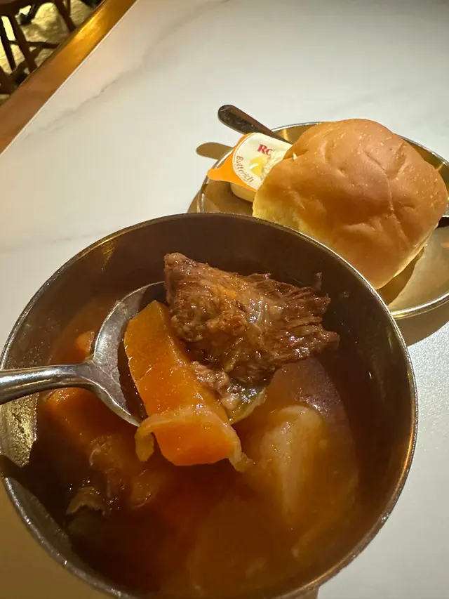最近比我在旺角發現了一間充滿特色情懷的西餐廳——吃扒,到平時在旺角鬧市街頭巷尾的食肆有着截然不同的風格。吃扒位於豉油街108號地舖,我就係比佢好靚的紫色配拱形大玻璃櫥窗所吸引。因為行街行到攰,好想坐得舒服d。Menu的主菜好抵食,加$25有餐包、湯、甜品及飲品。每次去食西餐廳,羅宋湯是我必點的,因為飲完好開胃,這間「吃扒」落足料煲,睇相就知,正👍🏻主菜我同朋友分別點了挪威三文魚扒檸檬牛油汁配炸椰菜花及5成熟特選肉眼扒配薯菜。第一印象係好足料好大份😆,小妹特別欣賞廚師烹調的檸檬牛油汁,小小酸帶點牛油香,配煎香三文魚扒,魚質又脆又滑。無誇張,炸椰菜花必食。如果主菜配的炸椰菜花唔夠食,可以再點這客小食:炸椰菜花配煙肉酸忌廉。另一主菜的肉眼扒5成熟度剛剛好,滿意👍🏻。肉與脂肪比例均勻,肉眼天然味道非常濃郁,入口即化。配菜炸薯條熱辣辣,我唔係講究,但比較怕食到一些凍冰冰的薯條。另外,我建議唔好將汁(除了選熱溶芝士)倒落去鐵板,因為會整到薯條唔脆。最後我們都食得太飽,連飯後甜品雪糕都食唔落。…查看更多