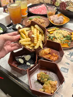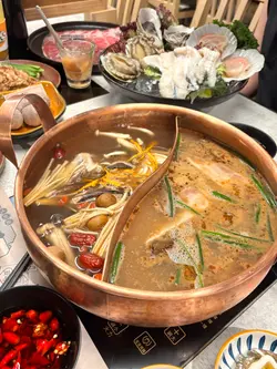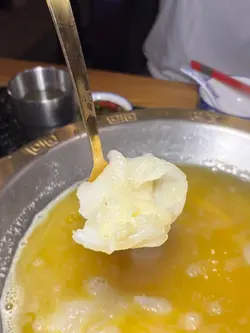 宮廷式既環境,打卡係唔錯餐枱空間都闊落🔸玲瓏浮凸•花膠雞湯鍋(半隻) $328大量三黃雞,即羽毛黃、腳黃、嘴黃,脂肪好夠,雞肉都好嫩滑,配合埋厚身嘅花膠,補充骨膠原之外,呢個湯底完全無負擔🔸大滾友牛肉拼盤(細) $428牛肉拼盤有七個牛嘅款式頂級安排斯牛小排、本地手切牛頸脊、澳洲和牛金錢展、美國頂級雪花肥牛、牛黃喉、牛肉粒、牛舌花,大部份牛味都好出,肉質有嫩有咬口🔸黃金藏嬌和牛墨魚丸(四粒) $78手打嘅墨魚丸,加成粒和牛,口感黏彈好特別🔸黃金響鈴四件 $78 黃金響鈴建議即食夠鬆脆🔸自家製竹蔗茅根(1渣) $78平時去打邊爐都會飲竹蔗茅根,自家製好足料🔸火焰焦糖豆腐花豆腐花原桶上,店員會點火做到火焰效果,睇完再食有儀式感其他配料🔸菜苗帶子餃四件 $78🔸蟹籽鮮蝦丸四件 $72🔸爆漿芝士腸 $38🔸大滾友雜菜拼盤 $118…查看更多