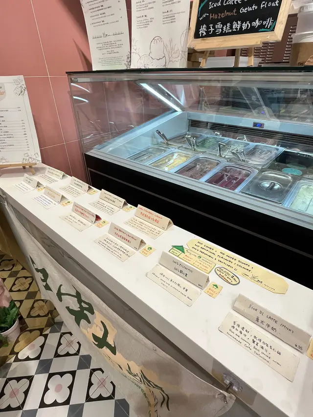 喺偏僻嘅商場中偶然發現呢間小店。人流唔算多,有唔洗排隊嘅cafe實在難得😀睇得出呢間店好有心,除咗有寄賣本地農產品,更融合呢啲農產品製作Gelato: 好似「本地有機芫茜牛奶」、「紅菜頭冧酒提子」、「火龍果檸檬」呢啲創意組合咁。Gelato嘅收費平均$58 一球,唔算平,但新鮮自家製嚟講誠意滿滿,加上店舖幾重視環保,唔用即棄餐具,所以都甘心支持。講吓Gelato嘅味道:1) 本地有機芫茜牛奶🌿 有鮮芫茜味,食到少少渣嗰種真材實料,但整體其實牛奶味比較重。對芫茜黨友嚟講覺得茜味可以再濃啲。2)馬達加斯加🇲🇬黑朱古力🍫呢隻朱古力有陣天然嘅莓香果味,偏酸同苦,比起芫茜味冇咁甜,對於唔想試新嘢嘅人嚟講係穩陣嘅選擇。飲品:咖啡同茶飲價錢意外地幾親民,$40甚至$30 樓下嘅選擇都唔少,屬於良心價錢。3)Flat White $384)高山玫瑰配焙茶 $32份量同味道屬中規中矩 ,咖啡有拉花! 侍應喺拎過嚟餐檯時仲有耐心解釋飲法,好有禮貌。對比喺中西環區嘅同類型Cafe,呢間嘅質素同性價比高,仲係Pet friendly,整體嘅體驗都好好👍🏻 …查看更多