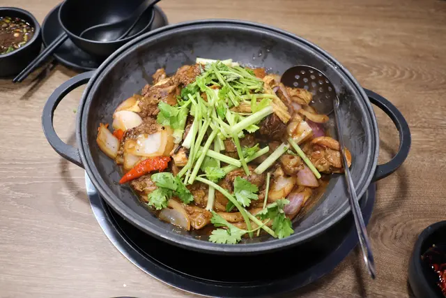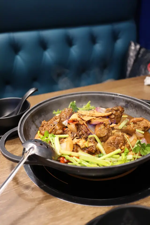 如果唔食得辣要注意,因為個煲好重黑椒味,好惹味!豬手幾腍,輕輕一咬已經離骨!上枱時已經熟㗎喇,店員會幫手翻炒芫茜,然後就食得喇!食完個咁有新鮮感嘅豬手煲,就要試埋呢度嘅雞煲,唔錯喎!我哋點咗中辣,有料到