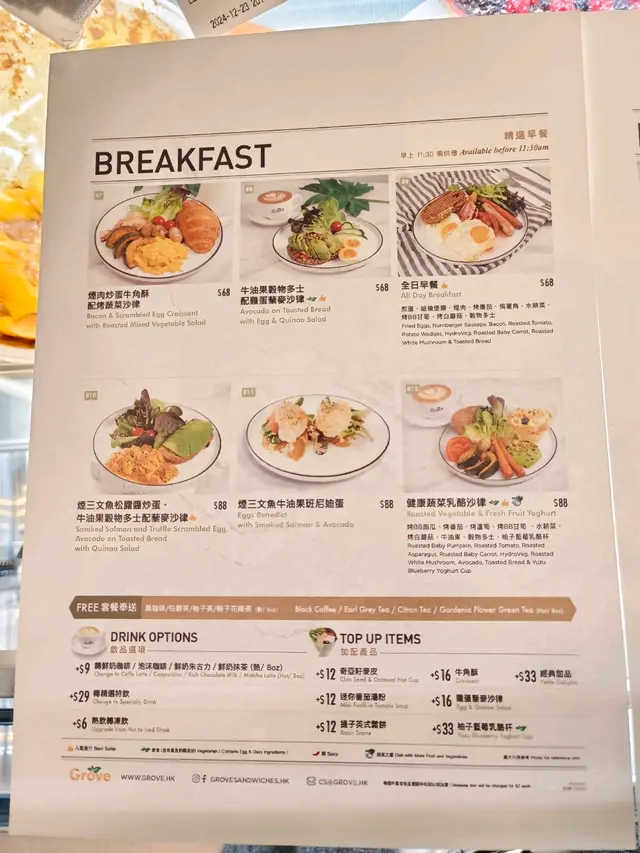 啟德零售館開業,附近嘅居屋公屋雖然未入伙,已經吸引左一眾食客試新野。以食物類型同價位,比起同區嘅Airside 同雙子塔 Sogo 選擇多好多,亦貼地好多。早餐來來去去都係McD、大X樂、大X活,難得呢間Grove 開朝早08:00,簡直係福音!可以一早享受晨光,坐得舒舒服服,望住青年館個景,嘆住個靚早餐靚啡,生而為人嘅感覺真好!All Day Breakfast 份量好合理 $68,加Cappuccino/ Latte加$9,深焙豆味香濃,奶泡綿厚,推!…查看更多
