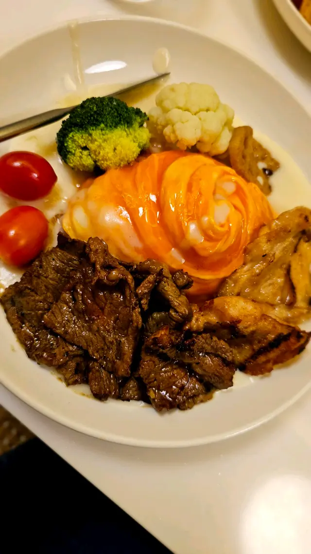 同老婆夜晚去「米炊」食飯,叫咗兩份安格斯牛小扒蛋包飯,我加雞扒,佢加紫薯餅。點知個招牌牛扒**伏到核爆**! 一上枱陣油煙味攻鼻,塊牛小扒**浸喺油海**,仲痴滿晒**黑色鑊屎**,似燒烤餐廳燒完成餐飯都冇換鐵網刮出嚟嘅嘢。肉又薄,冇肉味,淨係食到油煙味。 唯一叫做正常係炸紫薯餅(香脆唔錯)同我塊雞扒(算嫩滑),但完全救唔到主角嗰pat油鑊屎災難! 兩個牛小扒飯加兩款小食,飲品都冇叫,埋單$400幾蚊!俾咁嘅錢食油浸垃圾,真係嬲到想拍枱!…查看更多