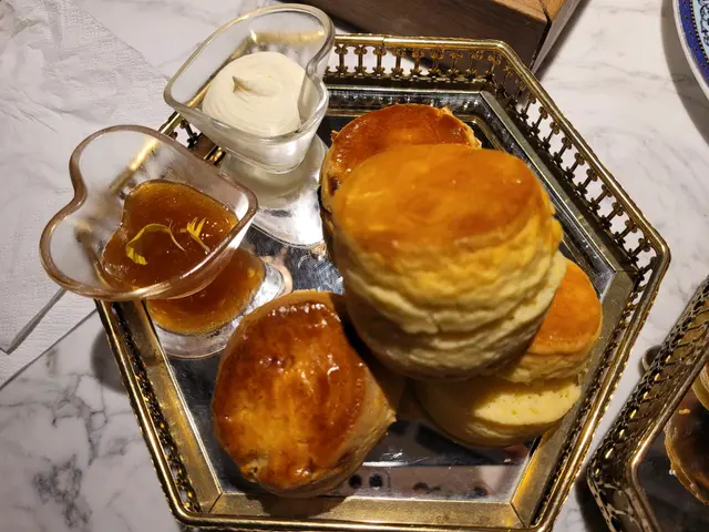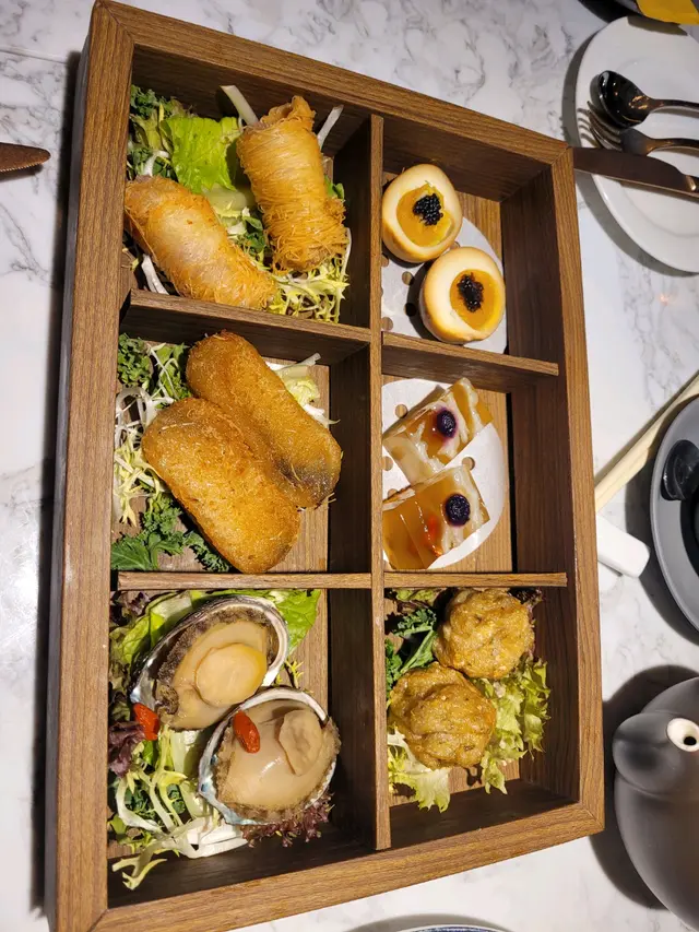一般High Tea只有三層架盛載甜點,但是次陳家廚房的下午茶有咸點有甜點,好豐富,而且咸點較甜點出色。這個春日柑橘下午茶,有三層架盛載甜點,有芝士蛋糕、焦糖燉蛋、朱古力千層酥等等。另外,有一個六格咸點,有竽角、糍粑、花膠凍及醉鮑魚等,味道很好,鮑魚尤其好味。還有一籃英式鬆餅,配以柑橘果醬,味道不錯,正常發揮。飲品除茶、啡外,還有香檳,但香檳味道真是一般。總括來說,整個下午茶食物多,感覺飽及滿足,性價比算高。…查看更多
