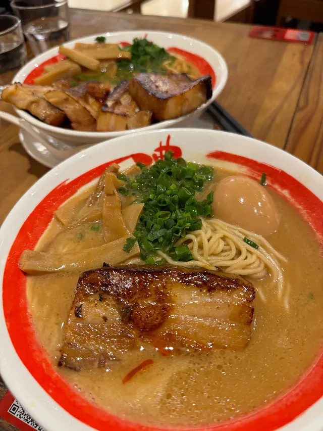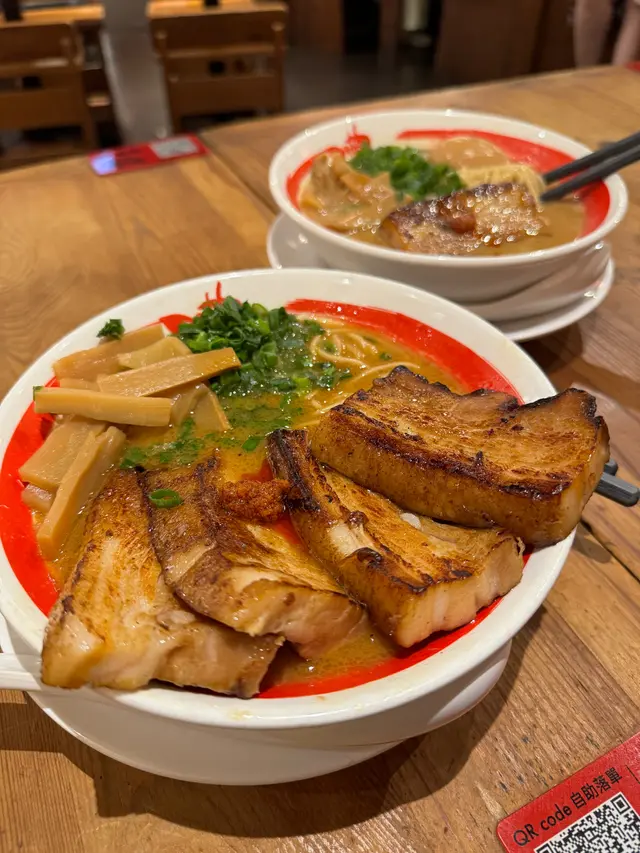 今晚去咗Airside食飯 係G樓就見到呢間拉麵店,我認得佢係日本過嚟香港開設嘅連鎖品牌😊所以決定試下 叫左2款拉麵🤤橫浜終極Max拉麵:三大塊叉燒,肥瘦比例均勻,邊緣炙燒過有焦香,肉味香濃且入口即化。仲有令拉麵加分嘅溏心蛋,啜咗個流心蛋黃入口,真係好正🤤湯底係濃厚豚骨湯底❤️真係正到成碗清曬見到碗底👍🏻斑馬大蒜牛油拉麵:呢個拉麵有啲驚喜👍🏻上枱已經聞到好香,係蒜油+牛油嘅香味🤤 將牛油放埋入湯底融化,好邪惡!但勁好味😋麵條沾滿左黑蒜油+牛油,真係食到停唔到口🤩呢間拉麵既味道非常好👍🏻係我最鍾意嘅豬骨湯底+叉燒拉麵🍜 完全係日本嘅味道👍🏻好味…查看更多