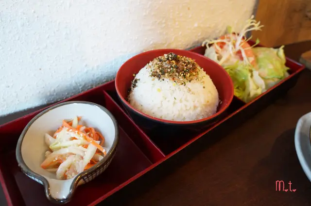 初三去車公廟迫完餓餓地,順勢走咗去“屋子”開餐!第一次嚟“屋子”,舖面不大,大約最多坐廿人。跟友人坐嘅係最返門口的一排“面壁位”對住幅牆食自己。。。看似Cafe,但除咗一般Cafe有嘅coffee or tea之外都有好多其他嘢飲嘢食揀!近期重有春節限定Menu添,所以我揀咗個春節鯖魚定食($7X)。依度嘅定食“絕對唔啱女仔食”,因為份量實在太大,我食到一半已經食唔落(飽)!個Set除咗有自家醃製嘅白、紅蘿蔔絲同日式芝麻醬沙律外,個飯重加咗啲飯素。主菜嘅醬油鯖魚一啲魚腥味都冇,肉質重幾滑添!正!!至於友人就叫咗個牛肉定食($6X),依個味道都唔錯,但就冇乜特別。,去“吉X家”食都可以。原本諗住留肚食甜品,但最終太飽只好下回再續。。。。…查看更多
