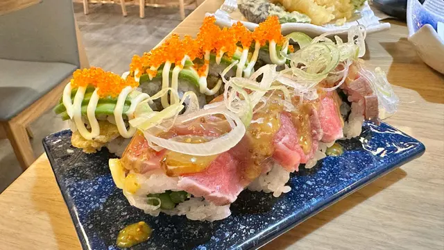 今日去左AIA果邊玩 玩完之後就周圍行下 係銅鑼灣見到呢間魚一壽司 門口好有日式風情應該都幾正宗 就入去食飯啦首先叫左露荀牛肉卷同牛油果軟殼蟹卷 爽脆既露荀同肉味濃郁既牛肉好夾 唔會覺得油膩而且層次豐富 而淡淡既牛油果肉配上炸得甘香可口既軟殼蟹又係相輔相承之作什錦天婦羅 有大蝦 矮瓜 蕃薯 大冬菇同尖椒 炸粉唔算厚而且無咩點調過味 所以可以食到唔同食材既原味 值得一讚三色刺身丼 有肥美三文魚 鮮嫩又厚身既帶子同埋甘香帶甜既海膽 加上開胃子薑片同日本珍珠米 係極高性價比既一個丼飯灸燒左口魚邊丼(醬油漬) 相對三色刺身丼 呢個丼用料只係左口魚裙邊 但因為用火槍灸過既關係 左口魚油好出 再滲落去D飯到 成個飯都充滿住魚油既香氣芝士燒生蠔 我本身比較少食熟既蠔 但呢個真係超正 因為佢用左好多芝士鋪係蠔上面黎燒 溶左既芝士可以拉絲之餘亦都好鹹香 加上creamy既蠔可以話係一絕既配搭吉列廣島蠔 食完個燒生蠔之後令我想試多個蠔 呢個吉列蠔炸得非常脆 而且相對上呢個蠔無咁鹹 更加能夠食得出蠔本身既鮮味燒鯖魚 比出面食到既淡少少 不過燒得個皮脆卜卜 D肉算乾身但唔鞋 師傅既技巧比常好牛舌芯串 用上一條牛舌最淋既部位 食落有少少化既感覺 加上黑椒同海鹽既襯托 令肉味更加出 值得俾Like…查看更多