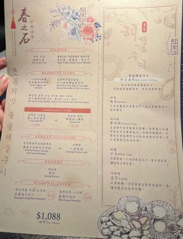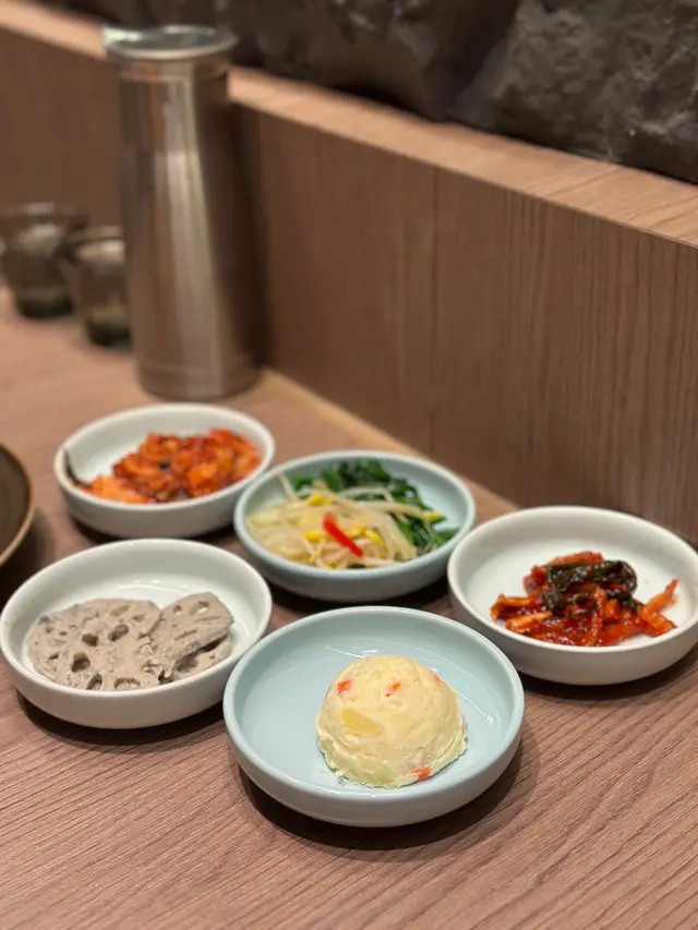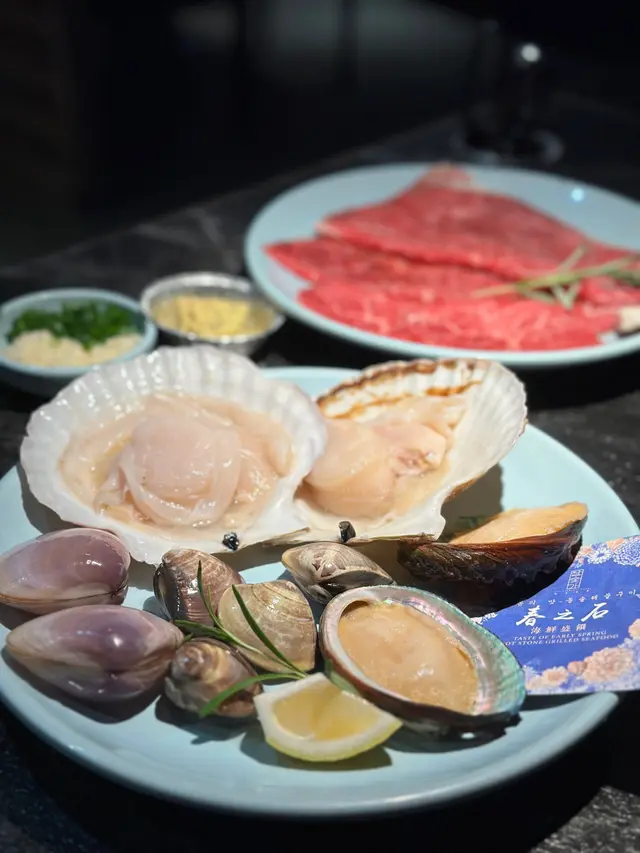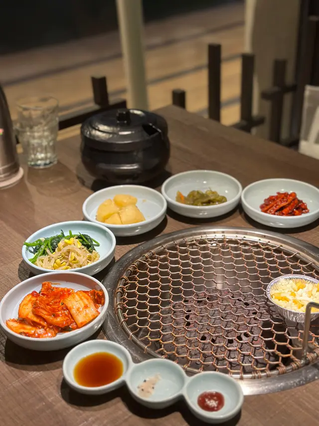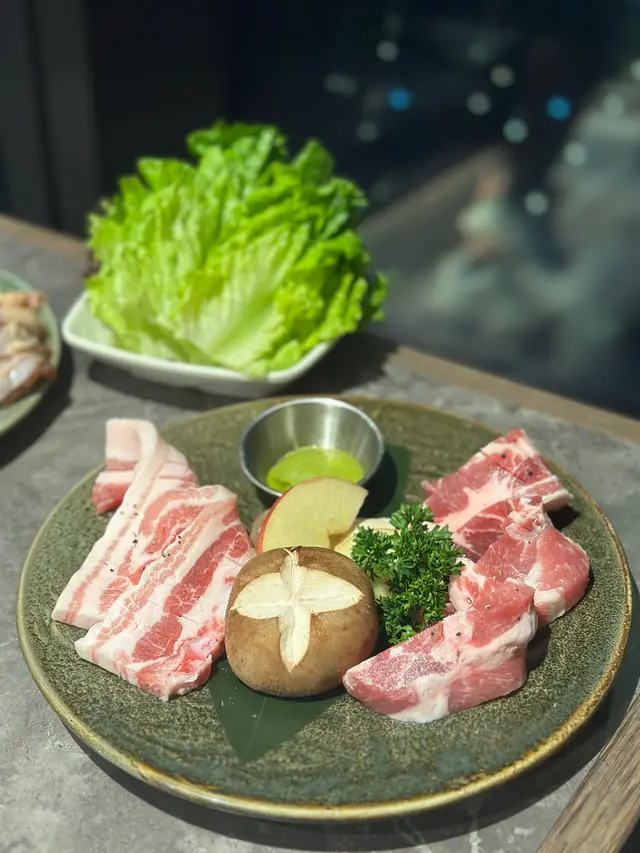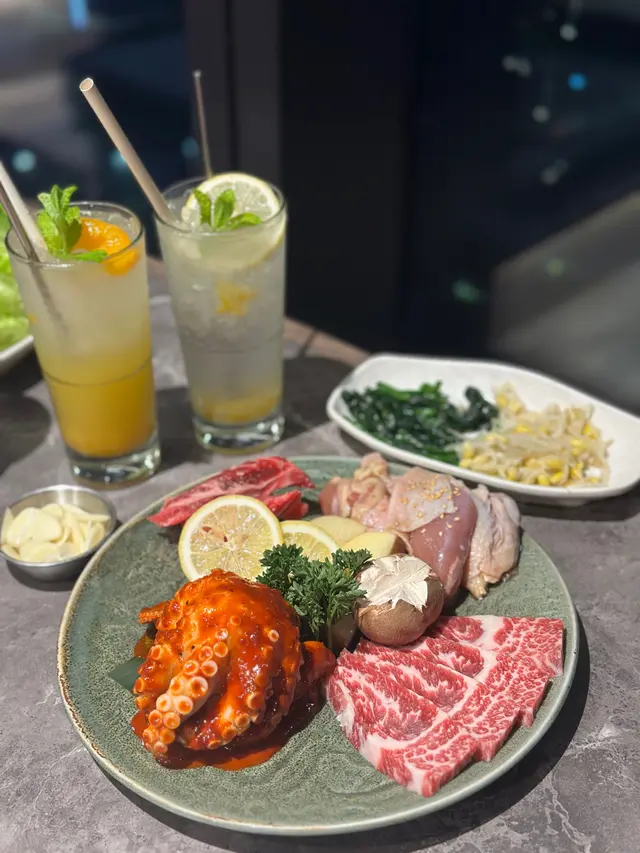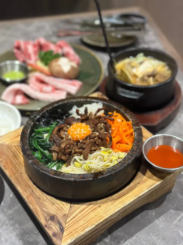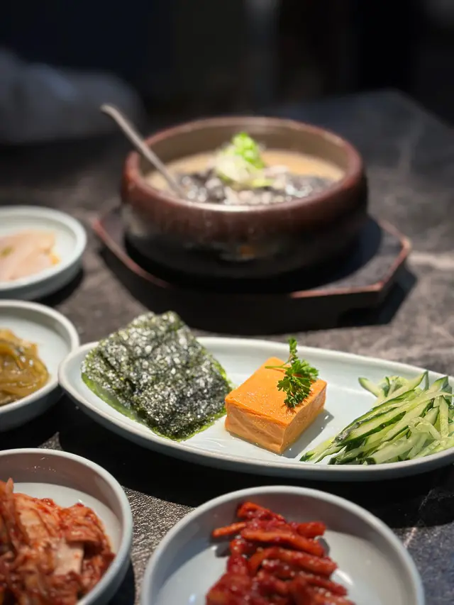 Airside冬柏韓燒店嘅雅韻釜山饗宴 $688 夠晒2個人以上去食,有齊豬牛雞海鮮好豐富!五花肉油脂分佈均勻,燒起來香脆可口;而黑毛豬梅花肉就肉質都好淋,食落彈牙又juicy。叫埋生菜包,完美平衡咗油膩感!和牛牛五花油花分佈細膩,燒到微微焦香,入口軟嫩到不得了。牛小排就肉味濃郁,帶點嚼勁。蘋果梨汁雞肉嫩滑多汁,帶有淡淡嘅果香同甜味,食落清新又唔單調。大八爪魚燒到外層微脆,內裏保持鮮嫩,簡單調味已經夠突出海鮮嘅鮮味。跟餐嘅大醬湯有燉牛肋條軟腍入味,蜆同蔬菜加添咗湯嘅鮮甜。石頭鍋飯就另外叫,但已經飽到食唔落咁濟,眼闊肚窄嘅後果🤣甜品方面,烤香蕉配朱古力肉桂粉同芝士蛋糕配雪糕都係唔錯嘅選擇。…查看更多