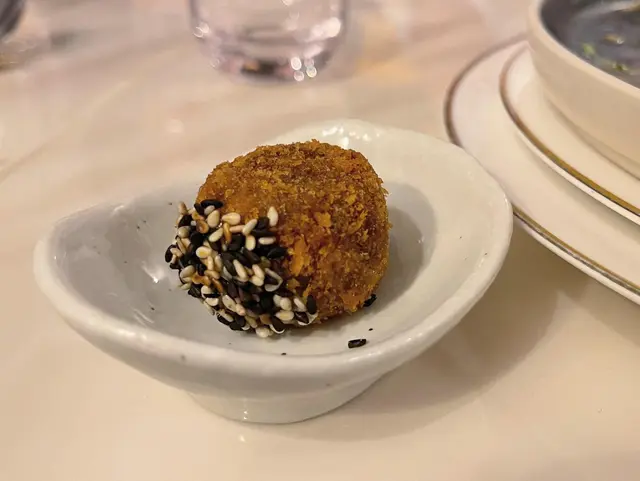 Pheromone 嘅難訂位程度.. 其實真係無需要再講, 真係只可以話係「可遇不可求」, 好彩 friend子訂到位, 一於一齊去食好西~ 今次就揀左個貴啲嘅 set , 多啲肉亦都多啲小食, 仲可以BYOW, 三五知己把酒吹水慢慢食其實係幾舒服嘅~ 喺開飯之前, 老闆娘會細心解釋今餐我地主食嘅肉會包括啲咩, 係嚟自咩產地, 咩部位, 同食落去口感同味道, 畀大家有個心理準備. 先嚟冷盤蝦~ 類似好似 cocktail shrimp 咁, 但係個醬就無咁茄, 都係醒胃嘅前菜啲野啦~ 跟住落嚟就係牛舌, 好入味, 好腍, 送酒真係一流~ 和牛可樂餅, 香料味好似勁左啲, 令到牛味有少少失色唔係講笑, 佢個蒜蓉包真係世一 無得輸, 係秒殺無難度. 雜菇, 亦都係意料之內呢一個價位嘅餐廳嘅水準啦. 佢嘅薯條, 係任食嘅, 亦都做得好好, 外脆內鬆軟, 但係為左唔好塞爆自己, 唯有忍口無狂食. 主角一號~ 羊里脊(Picanha), 有驚喜, 正常出面西餐食羊 唔多會食呢個位, 呢個部位肥係會偏多, 佢個 finish 做得好好, 食落去肥瘦嘅部份配合得好好, 唔會有覺得「好肥」嘅感覺. 主角二號, 三款牛, 包括有小牛, 牛柳心 以及 和牛里脊 (左至右), 三個都係事前處理功夫較多嘅部位, 其中小牛最驚喜, 食落係真係有種好嫰滑嘅感覺, 有少少好似食緊名古屋生雞肉嘅 feel. 其實仲有湯, 沙津同甜品~ 真真正正係食飽飲醉嘅一餐晚飯~ 有幸去過 Pheromone 不只一次, 今次係暫時最好嘅, 其實喺主食質素上, 每次去都真係有啲分別嘅, 相信最大嘅原因係要睇佢地當日有咩貨, 明白佢地嘅理念係希望大家可以試到啲未試過, 或者相對地少見啲嘅部位, 例如我今次就食到小牛, 或者羊里脊 等等. 但係可以對於對「扒房」牛扒有固有前設嘅食客, 冀望同現實就可能會有啲距離. 如果你係想食熟成bone-in ribeye 的話, 或者真係唔應該嚟呢度食, 但如果係想試下一啲相對地小眾嘅肉類, 可以試下 Pheromone, 但係同樣地, 當日有嘅肉 係唔可以100%保証會係你杯茶, 同埋大大大 前題係, 首先要訂到枱.