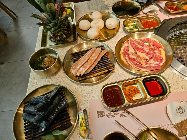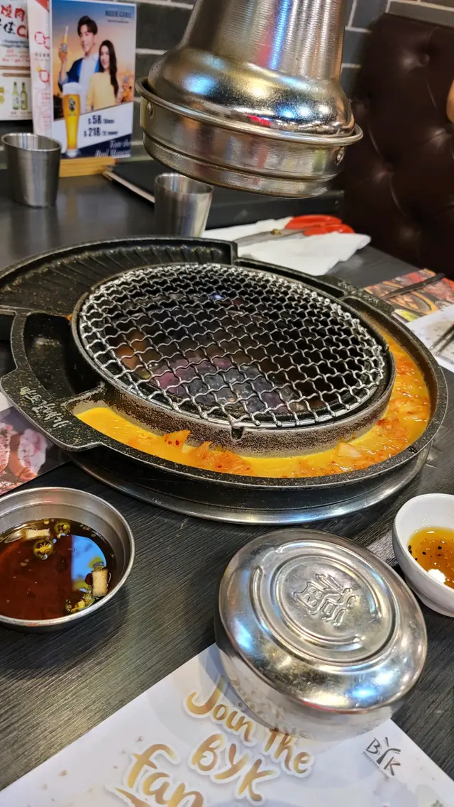- **蜆、東風螺、魷魚**:清洗得乾淨,無沙無腥味! - **原條魚類**:三文魚鮫、大眼雞等,魚肉鮮嫩。 海鮮refill速度快,而且員工會不停補充,唔怕搶唔到!【🔥 $1加購火鍋!燒烤+打邊爐雙重享受】 餐廳最近推出優惠,**加$1**就可以額外享用小火鍋!湯底有蕃茄湯、豬骨湯等選擇,酸甜開胃。火鍋配料有丸類、蔬菜、烏冬等,燒烤食到膩嘅時候轉打邊爐,完美平衡口味。 【🍖 串燒+熟食+飲品!性價比超高】 - **串燒**:雞翼、羊架、豬大腸、蒜蓉包、燒菠蘿等,種類多又好味