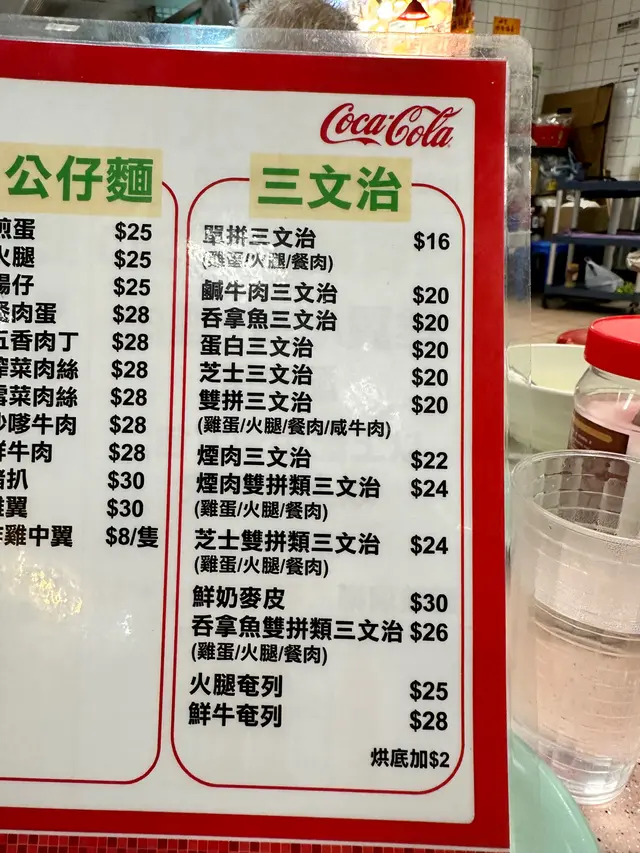 餐牌上寫雙拼三文治(雞蛋/火腿/餐肉/咸牛肉)$20,叫了腿牛治,姐姐說要加五元(收25),說是老闆說的。雖然唔係一定要食,但明明是他餐牌寫雙拼內容叫的 如果因為要咸牛需要加錢,餐牌就應該在一般雙拼中把咸牛肉這個選項刪了。(問題是叫蛋牛不會加錢。一開始以為是火腿的問題,兩款肉要加錢,但竟然說是因為咸牛肉要加?哪蛋牛時也應該要加了呀)根據加五元這算法。腿牛治比煙肉腿治還要貴一蚊,搞笑!