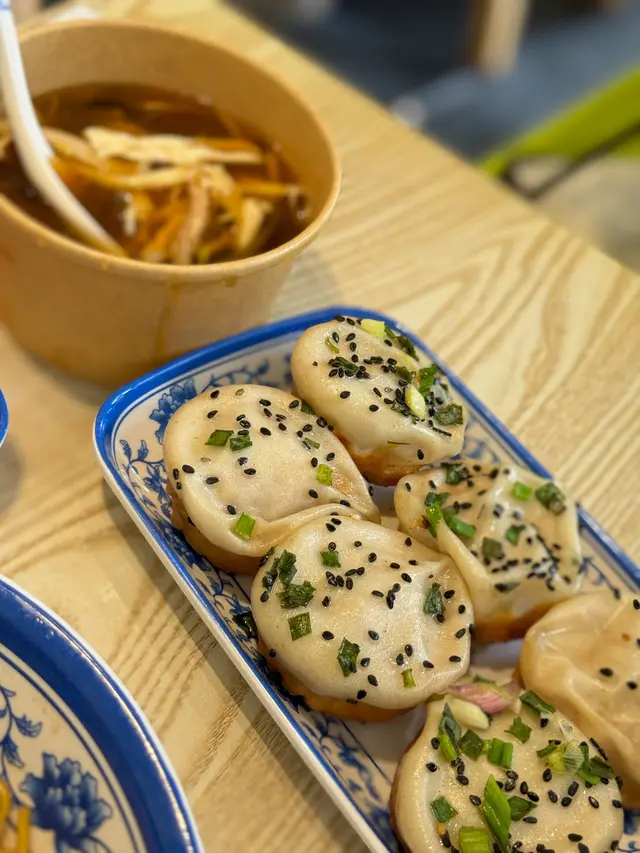 生煎包最出名 係用新鮮梅頭肉整我都好期待兩個人叫左個餐雞絲酸辣湯+生剪包(6隻) $59另外叫左排骨蔥油拌麵 $42首先試左生煎包先其實味道唔差而且都多汁不過好可惜唔夠熱係微暖既狀態