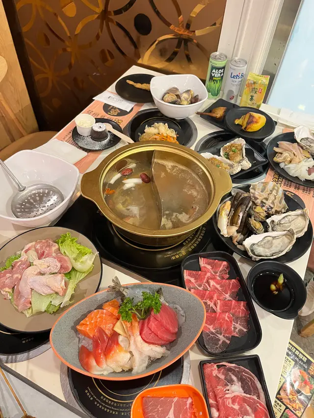 近排去荃灣行街,發現原來牛之鍋推出了無限時❗️任飲任食❗️海鮮火鍋放題‼️晚市最長時間由17:30-23:00,包括有海鮮、火鍋、刺身、串燒、雞煲、甜品,好多選擇,今次真係吃到飽!🤭 又可以同朋友傾下計、慢慢食!😝 餐廳面積都幾大,環境乾淨企理,而且這裏的員工態度殷勤,上菜和收碟的速度都快,用餐體驗不錯!😎👍🏻我們今次選了B餐 💰 $298任食美國極尚牛肉🐮、澳洲羊肩肉,油花分佈均勻,肉質軟嫩,輕輕淥一淥就食得!🥢一入餐廳就被自助區的海鮮吸引著,魚缸入面有生猛的大蝦 🦐 、大蜆、沙白,全部都好新鮮,蜆又無沙,自己喜歡夾幾多都得,旁邊還有超豐富的海鮮 🦀 自助吧,有蟹、🦪 蠔、蟶子、鮑魚、青口、魚、水魷魚等等🐟,種類繁多,好吸引!🤤火鍋湯底方面 🍲,他們主打「一人一鍋」的火鍋模式,乾淨衛生,也可以選擇鴛鴦鍋,同朋友開心share~ 湯底共有9款湯底選擇,我們選了椰子雞湯鍋及壽喜燒湯。椰子雞湯鍋好清甜,壽喜燒湯甜甜哋,用來淥海鮮同牛肉都好夾!☺️另外,還有刺身都係任食🍣!😍 有吞拿魚 🐟、三文魚、甜蝦 🦐、希靈魚、北寄貝、鮑片、泰式刺身蝦等等,每款都不錯,甜蝦好鮮甜,三文魚好厚切,幾肥美 !串燒 🍢 任食也是一大賣點!即叫即燒 🔥,熱辣辣,仲有個爐仔保持溫度,好貼心,唔怕嚟到啲嘢變凍晒~串燒種類亦都好多,有燒鮑魚、帆立貝、雞軟骨、燒雞心、燒雞脾肉 🍗、燒雞腎、燒肥牛肉🐮、燒牛舌🐮、燒五花豬肉🐷,每款都燒得帶點焦香,香口惹味!🤤 特別推介燒牛舌和雞軟骨🐥,爽爽地,口感一流! 另外,🧄蒜香燒生蠔 🦪 的蒜蓉味好香,蠔肉肥美,也很惹味!😋 🥤飲品也有很多選擇,除了汽水、果汁 🧃,還有多款罐裝啤酒 🍺 及生啤任飲 🍻,喜歡喝酒的朋友一定好開心!😎最後當然要食甜品啦 🍰!他們的甜品款式真的超級多款又好高質!🤩 真係可以媲美出面嘅甜品舖!😍 有香甜軟糯的烤榴槤🔥、榴槤芭菲 🍨、雪燕榴槤忘返、榴槤炸彈,榴槤控一定會好高興!🤤 還有🍮法式焦糖燉蛋、流心的朱古力心太軟、宇治抹茶芭菲🍵、🥭芒果綿綿冰❄️、木瓜燉雪耳、楊枝甘露、紅豆椰汁凍芋圓等等,我都食咗好多款!🤭 真係回晒本!🤪 為這餐劃上超完美的句號!😌…查看更多