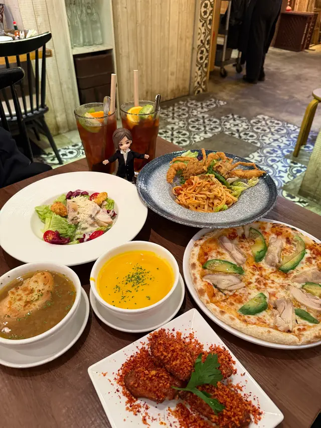 諗起食意粉,即刻去咗《意粉狂熱》第一次幫襯😌見到店外擺放多個套餐選擇,而店內環境坐得舒服外,地點亦非常就腳!意粉&披薩狂熱套餐 $338法式芝士洋蔥湯~洋蔥味濃郁香濃南瓜忌廉湯~香甜滑溜香草雞肉凱撒沙律~加入芝士碎作調味,足料夠新鮮!魔鬼辣味雞翼~感覺沒有辣度,外脆肉質晤會乾!軟殼蟹配蕃茄濃汁鮮製意粉即炸軟殼蟹外皮酥脆爽身,絕不油膩,配以酸甜開胃的蕃茄濃汁和有嚼勁的鮮製意粉,味道不錯👍🏻!芝士牛油果烤雞披薩特別揀咗呢個牛油果烤雞作配料,口感清新,餅底薄脆!是日甜品 ~份量偏細🤭味道正常!水果茶~不太甜,真正鮮果加上茶底!…查看更多
