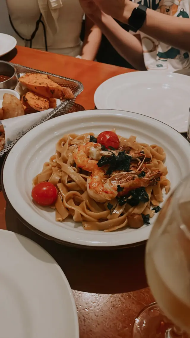 同friend子一行四人夜晚去咗呢間食野小食拼盤有雞翼腸仔,蒜蓉包薯角 咩都食到啲意粉方面,嗌咗個大蝦蒜蓉闊條麵同埋卡邦尼意粉 都係大家一齊share味道算唔錯每人嗌咗杯白酒 埋單大概三百幾 味道算係咁…查看更多