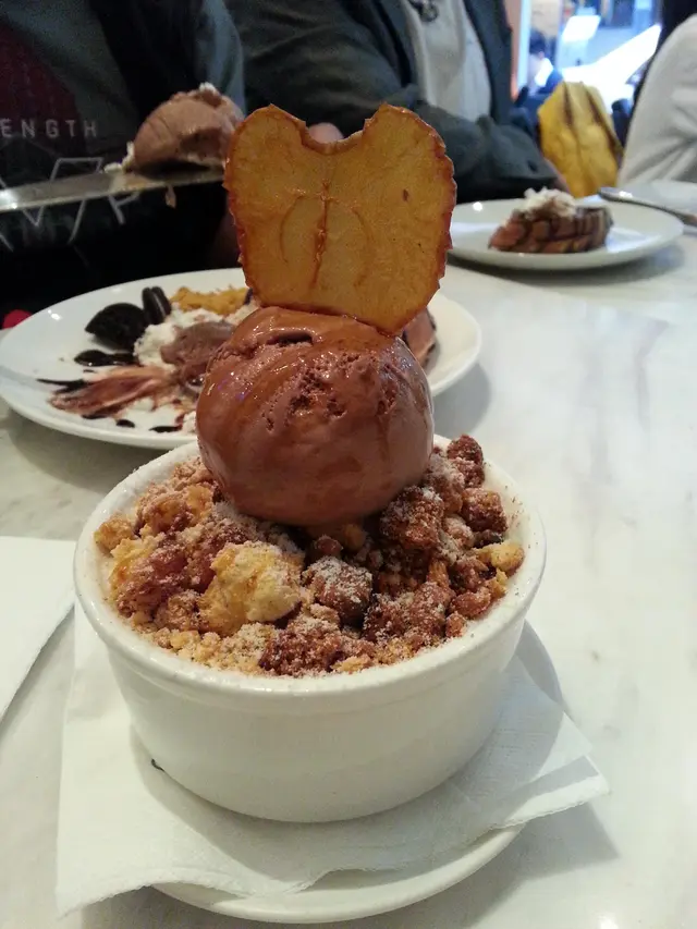 最後叫咗個香蕉夾餅&蘋果金寶,先講夾餅外脆內軟口感不錯,但唔香冇乜味,金寶嘅蘋果茸味道一般,做得比較濕 兩樣嘢都冇驚喜,真係唔會有下次,最後都係要去隔離食份子雪糕滿足番自己…查看更多