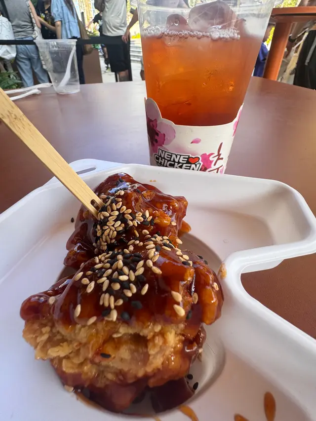 當日係復活節假期最後1日,行過俾座地易拉架吸引咗,圖片係杯上有炸雞,杯中有凍飲😍。店內只有一位男店員,尚算勤力,當日店舖冇乜客,反而隔離茶飲店排長龍。我同朋友order咗2份小食杯,選擇芝士炸雞配芒果Milky Soda、甜辣炸雞配蜜桃烏龍茶,等咗10零分鐘,可以取啦,但發現飲品冇冰,我詢問店員,佢回答店內沒有冰塊,當日氣溫接近廿幾三十度,飲品有冰會好啲,佢都非常好,即刻過隔離茶飲店借冰粒,片刻後佢拎住裝滿冰粒嘅杯回來,真係好服務👍🏻,凍飲感覺即刻唔同晒,本身飲品偏甜,加冰後好飲好多。至於炸雞味道,兩款炸雞皮脆肉敕,芝士炸雞的芝士粉及芝士醬好好味,又香又甜,而甜辣炸雞嘅醬汁調教得好惹味,仲落有粒粒芝麻,加添口感,雖然係叫甜辣炸雞,但唔覺有辣味,好啱我唔食得太辣嘅人。小食杯內有3件炸雞配凍飲,價錢每份$68。覺得有少少貴,但可以接受而且好好味。原來旺角朗豪坊有分店,供應放題,好想搵日去試吓🤭😋😋😋。Remarks : 圖片飲品唔滿嘅係冇冰狀態,另一幅飲品已加咗冰滿咗😂🤣…查看更多
