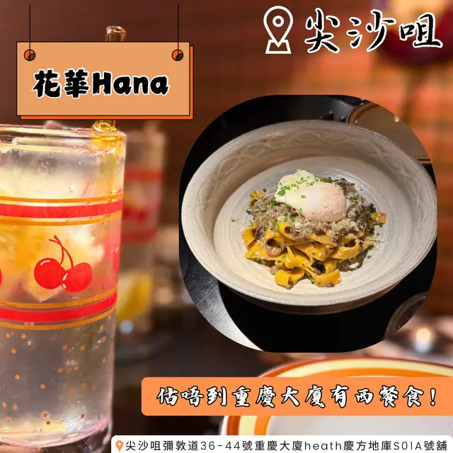 🍽️ 食評|花華 Hana - 手工意粉出色!多國菜驚喜之選📍 尖沙咀彌敦道重慶大廈興坊地庫S01A號舖今日同大家分享一間隱藏喺尖沙咀地庫嘅多國菜餐廳,除咗主打麵包糕點,手工意粉更加係必試之選!🍝 午餐set $128性價比高!包餐湯同麵包,可以揀一款手工意粉/馬鈴薯批• 蘑菇手工意粉:蘑菇味香濃得嚟唔會蓋過意粉原味,意粉口感彈牙煙韌,手工製作果然唔同啲!• 法式千層馬鈴薯批:第一次試已經愛上!層次豐富,有蛋、薯仔、芝士醬同Parma Ham,鹹香交融好滿足🍸 飲品選擇• Lemonade:清爽解渴• 梅酒cocktail $98:晚餐時段試,味道都OK,配意粉幾夾🍤 晚餐手工意粉 $158• 開心果醬三文魚蝦意粉:開心果味突出,好nutty!同意粉本身好夾,但加埋三文魚同蝦一齊食,味道有少少唔夾• 意大利肉醬意粉:蕃茄肉醬鹹甜適中,帶少少酸味,加埋芝士更加鹹香,撈埋彈牙手工意粉簡直完美!🦪Seafood茄子台山蠔 $128茄子好好食,但係味道偏濃,將佢切成一小嚿連埋生蠔一齊食平衡到個鹹味,生蠔都大份,食落都正常🌟 總評:4.2/5💡 必點:蘑菇手工意粉、法式千層馬鈴薯批、意大利肉醬意粉💰 人均:午餐$150左右,晚餐$200-300#花華 #手工意粉 #尖沙咀美食 #多國菜 #香港美食 #foodiehk #抵食午餐[小貼士] 午餐set性價比高,想試多幾款口味可以晚餐時段嚟! 小編食嗰陣見到晚餐嗌主菜,肉類/海鮮,甜品同飲品可以有八折,但係嗌晒全部會好貴,so far嗌兩份主菜加一份肉類都夠食,好似冇最低消費,但計埋+1消費都有啲貴🥹🥹不過餐廳氣氛都幾好,服務都好好,冇話會趕客人走。…查看更多