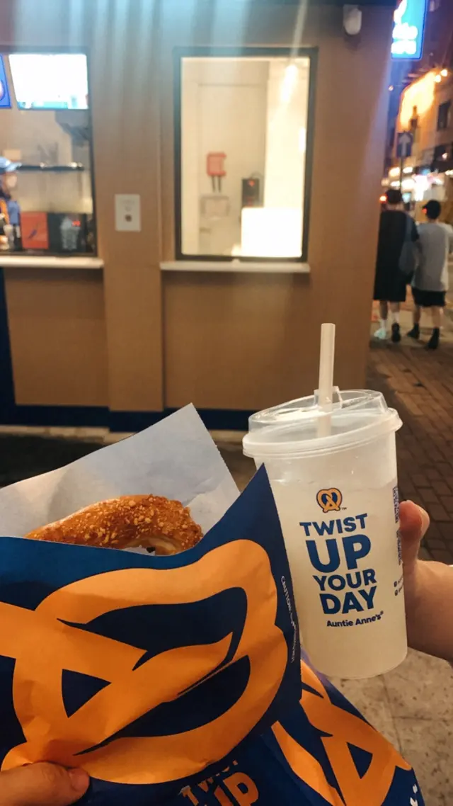 👧🏻不務正業的女子食評👧🏻 *評分超過👍🏻👍🏻👍🏻👍🏻為推薦尋找兒時童年回憶仲記得細細個果陣時去新世紀廣場 即系而加嘅MOKO 每次聞到濃濃的麵包香 就知道呢間鋪頭在果層 每次去都一定會去拎試食 已經覺得好好食 好想買成個麵包黎食 但無計細個無咁多零用錢會去特登買呢個包 慢慢大個先發現呢間店在香港已經全線結業 好彩等到呢間店在香港開番 終於可以自己自由決定買咩黎食今次我地試佢最signature 的set, 杏仁味蝴蝶餅配lemonade 好彩我地買果日系雨天無咁多人買 終於可以食到心心念念嘅蝴蝶餅 但唔知系咪預先整定左一批 食落唔系回憶中熱辣辣脆卜卜的感覺 唔知系咪期望愈大失望越大 味道不過不失 而佢地嘅Lemonade反而幾好飲 好refreshing 啱哂夏天行街街到好熱飲 如果行過經過同埋無咁多人排隊果陣都可以買黎試下☺️Almond Pretzel set($45 跟餐)評分:👍🏻👍🏻👍🏻Original Lemonade($45 跟餐)評分:👍🏻👍🏻👍🏻👍🏻…查看更多