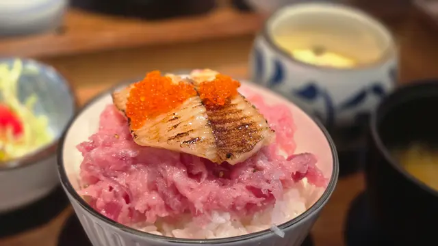 銅鑼灣渣甸坊入面有間相對隱世小店 專賣吞拿魚各部位,入店已經見到螢幕播放緊唔同訪問片段 介紹此小店賣嘅吞拿魚特別部位 魚骹拖羅,背拖羅,蛇腹/降霜大拖羅 等~ 隔住屏幕都已經流晒口水小店採用QR code自助落單連付款,坐低落單就可以坐定定等開餐大食嘅表示見到免費加飯開心到不得了🤩 仲有都巿人成日唔記得帶喺身嘅充電寶免費提供比客人使用 非常貼心上枱就聞到吞拿魚油香,加埋叫咗火炙左口魚,更加香味四射入口就忍唔住揀咗最強油香嘅火炙左口魚,大大塊,表面燒得比外面食到嘅更焦香,入口更強嘅油脂滿溢感散發喺口腔入面久久不散,如果唔係肚餓要繼續食,可能連水都唔想飲費時沖淡嗰種油香🤣吞拿魚蓉都見到唔少細粒嘅赤身撈咗喺入面,仲加上少量京葱提香!平時唔食赤身嘅我都覺得呢度嘅赤身特別滑溜,唔會有乾爭爭鞋sap sap嘅感覺,更莫講中拖羅大拖羅嘅嫩滑,連埋均衡油花,咬落去油香慢慢滲出嚟,每啖都係日本幸福嘅感覺🥰…查看更多