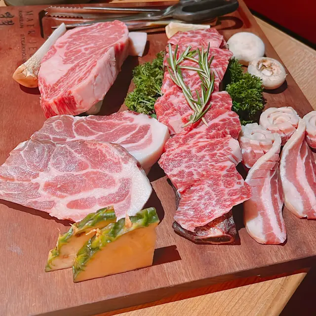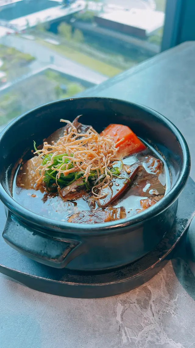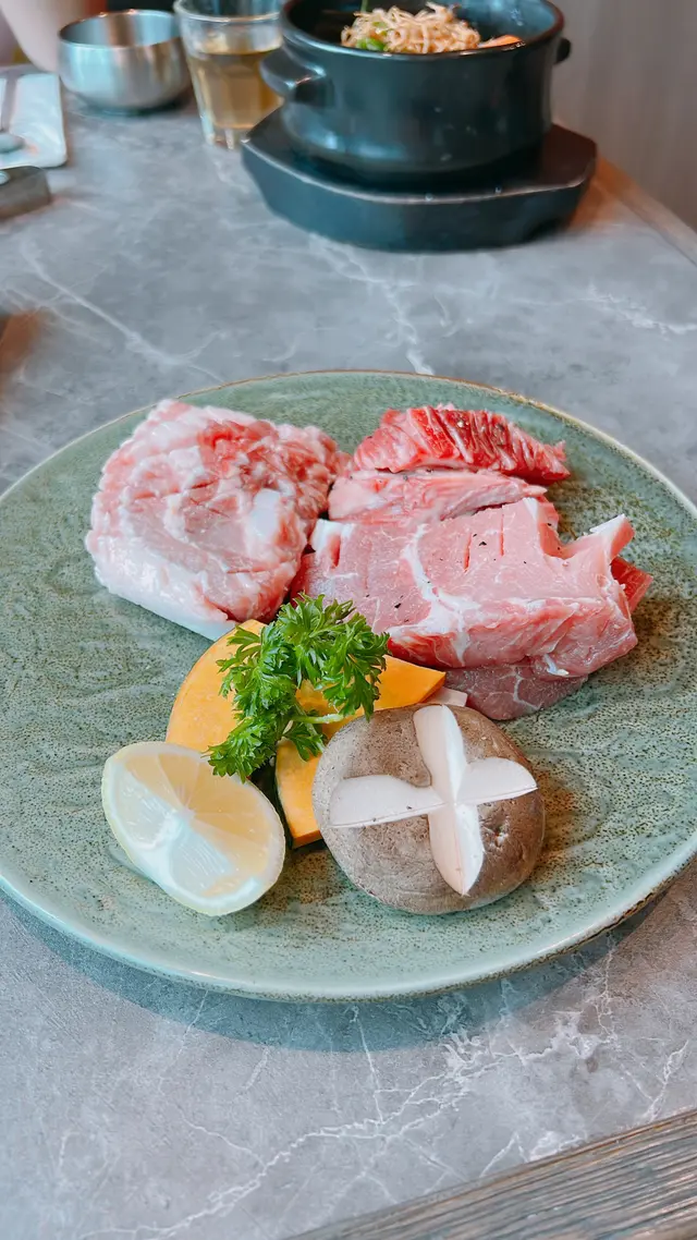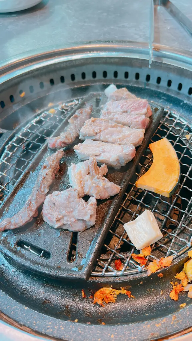 啟德Airside開左唔少新餐廳今日去食lunch,揀左間坐得舒服既韓國餐廳安排坐窗邊既卡位,景觀好開揚舒服有幾款lunch set試左一款燒肉同一款非燒肉套餐一如其他韓國餐廳,坐低就會送上幾款前菜,有辣泡菜、南瓜蓉、娃娃菜、白蘿蔔等等食燒肉仲會有芝士粟米同泡菜煎蛋🥩名物雪花五花肉套餐 $238包括有🔅名物雪花五花肉🔅濟州黑毛豬梅花肉🔅和牛牛五花為左避免直燒易燒燶肉類同痴網,餐廳會比一個鐵板烤盤兩樣豬肉燒過都好好食豐富肉汁,肉質夠嫩,燒香後迫埋油脂出黎,用生菜包黎食,唔會太油膩牛五花就比較有咬口哩個套餐我較喜歡豬肉類🐂燉牛肋骨配白飯 $108牛肋骨燉得好入味、好淋身好易就咬開份量都有3大件,加埋配料蘿蔔撈飯食冇得輸…查看更多