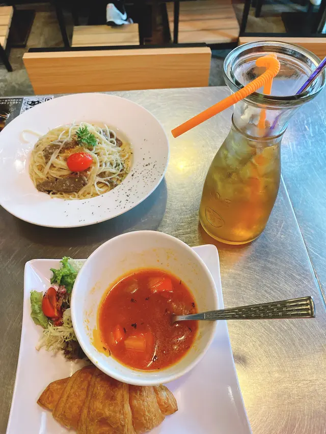 星期六放工去了試這家lunch!叫了個牛肉條天使麵,蘋果綠茶!食物還ok, 好好食倒也不至於,飲品普通。但服務態度頗好的!如果經過都可以一試,set lunch 配湯跟飲品,還有牛角包,挺飽的!承惠$73 也很抵食!但如果對味道期望太高的,要考慮啊!…查看更多